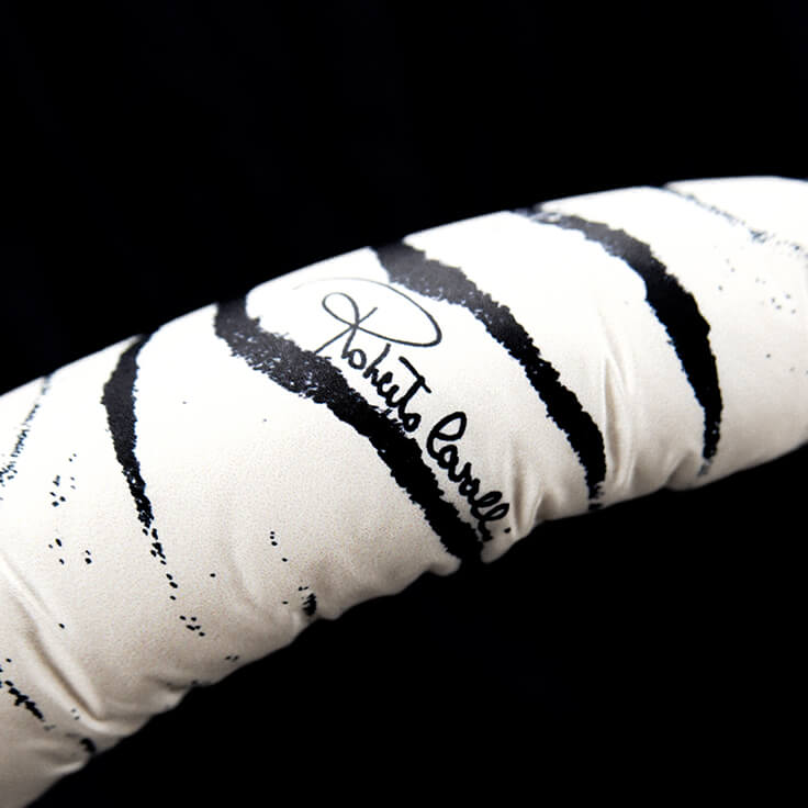 Roberto Cavalli is renowned for bold animal prints, reinventing classic patterns each season with modern silhouettes and innovative techniques. Featured in both their Spring 2025 runway collection and our collaboration, the Mini Zebra print beautifully symbolizes our partnership. The print is carefully aligned on our bags to highlight the striking design.