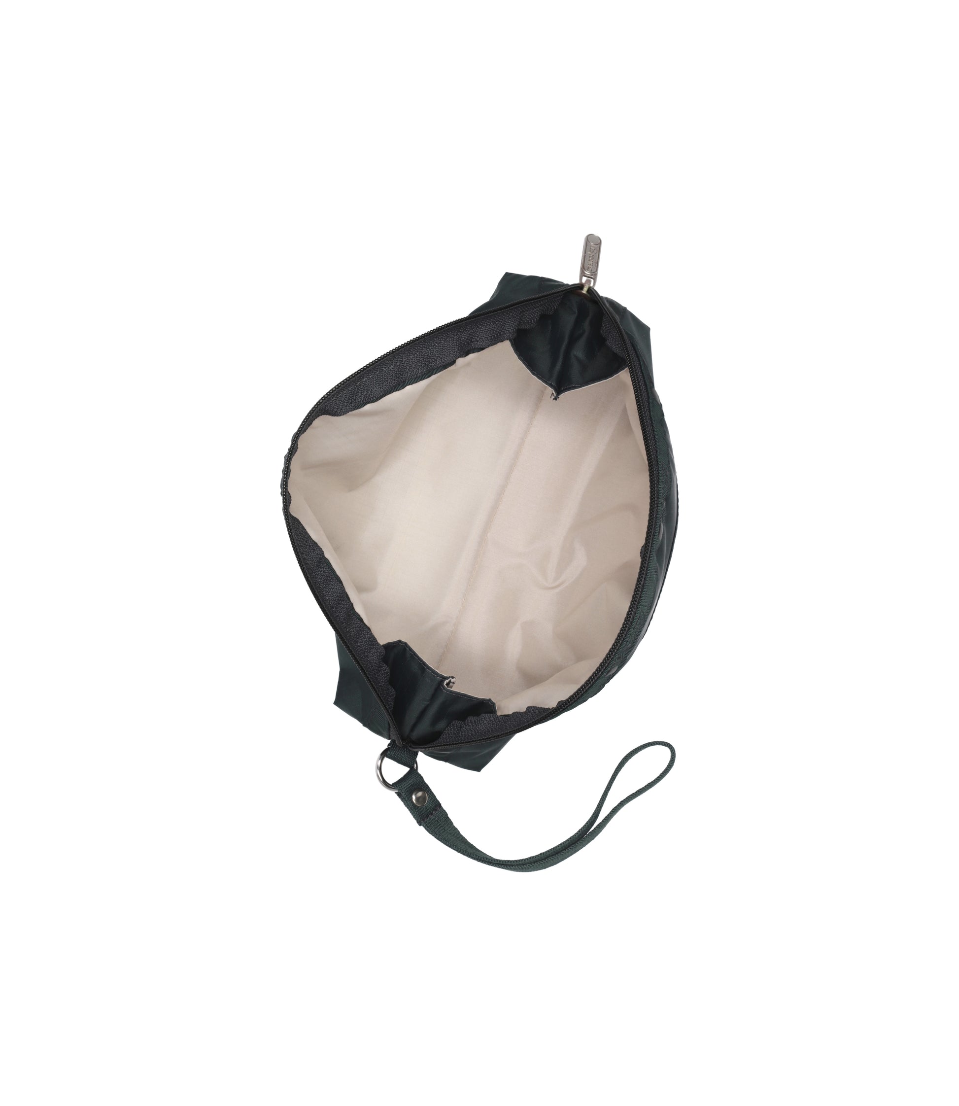 Zipped main closure, Exterior front zip pocket, 0.5in/1.3cm wide wristlet strap (Length: 5.5in/14cm)