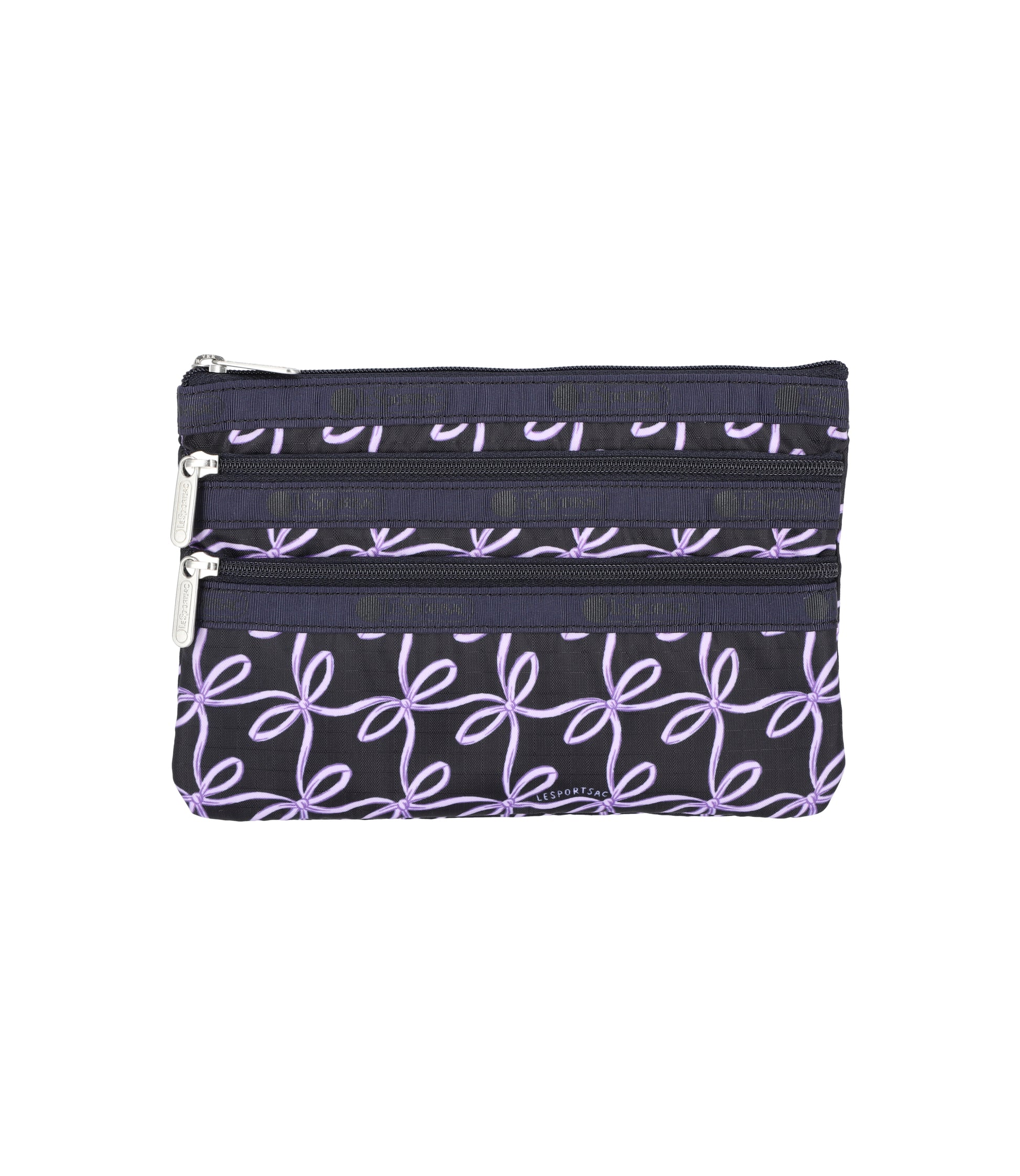This 3-Zip Cosmetic is the perfect bag to hold all of your necessary travel accessories! Pack your passport, currencies and personal care items for the perfect on the go organizer. Zipped main closure, Two front pockets with zipped closures