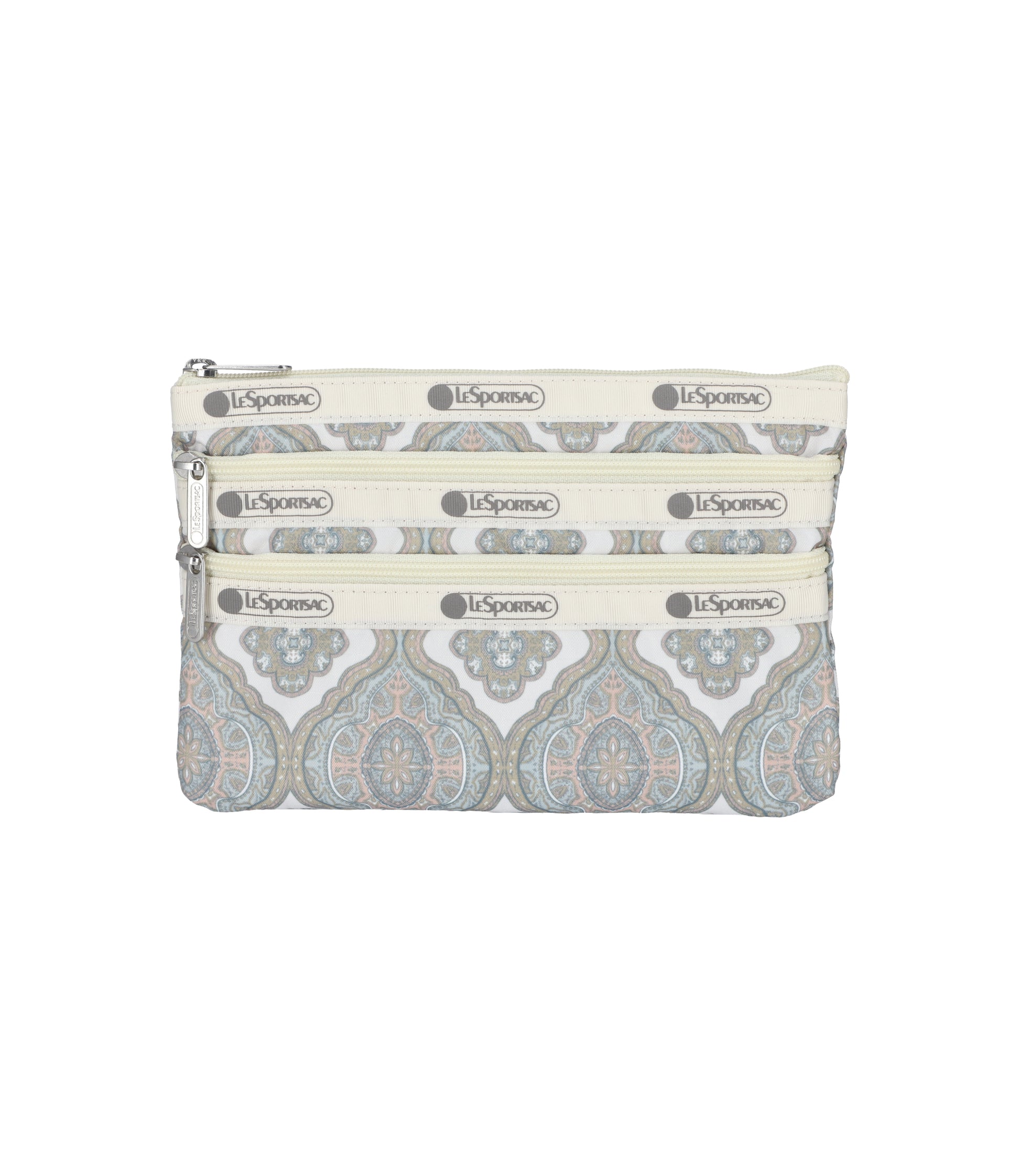 This 3-Zip Cosmetic is the perfect bag to hold all of your necessary travel accessories! Pack your passport, currencies and personal care items for the perfect on the go organizer. Zipped main closure, Two front pockets with zipped closures.