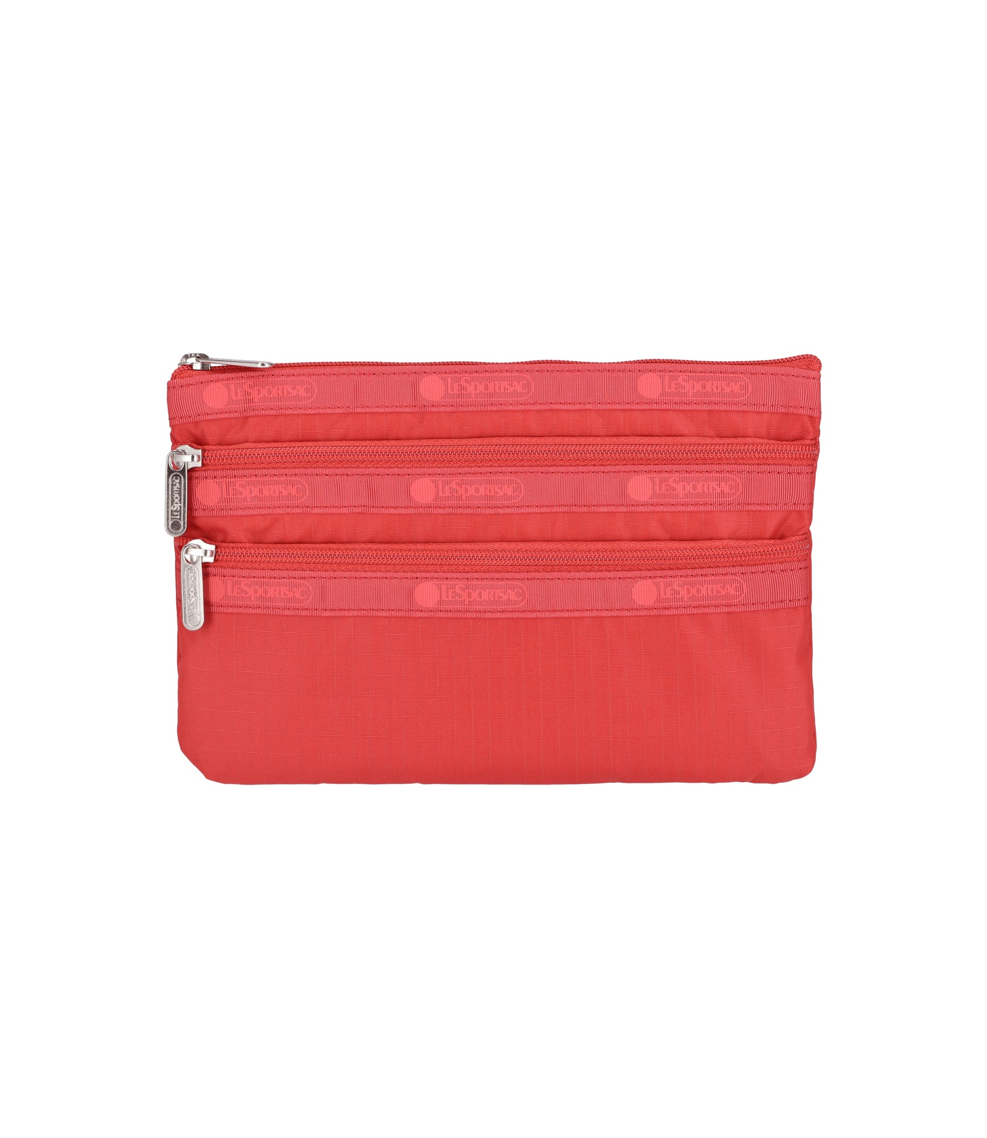 This 3-Zip Cosmetic is the perfect bag to hold all of your necessary travel accessories! Pack your passport, currencies and personal care items for the perfect on the go organizer. Zipped main closure, Two front pockets with zipped closures.