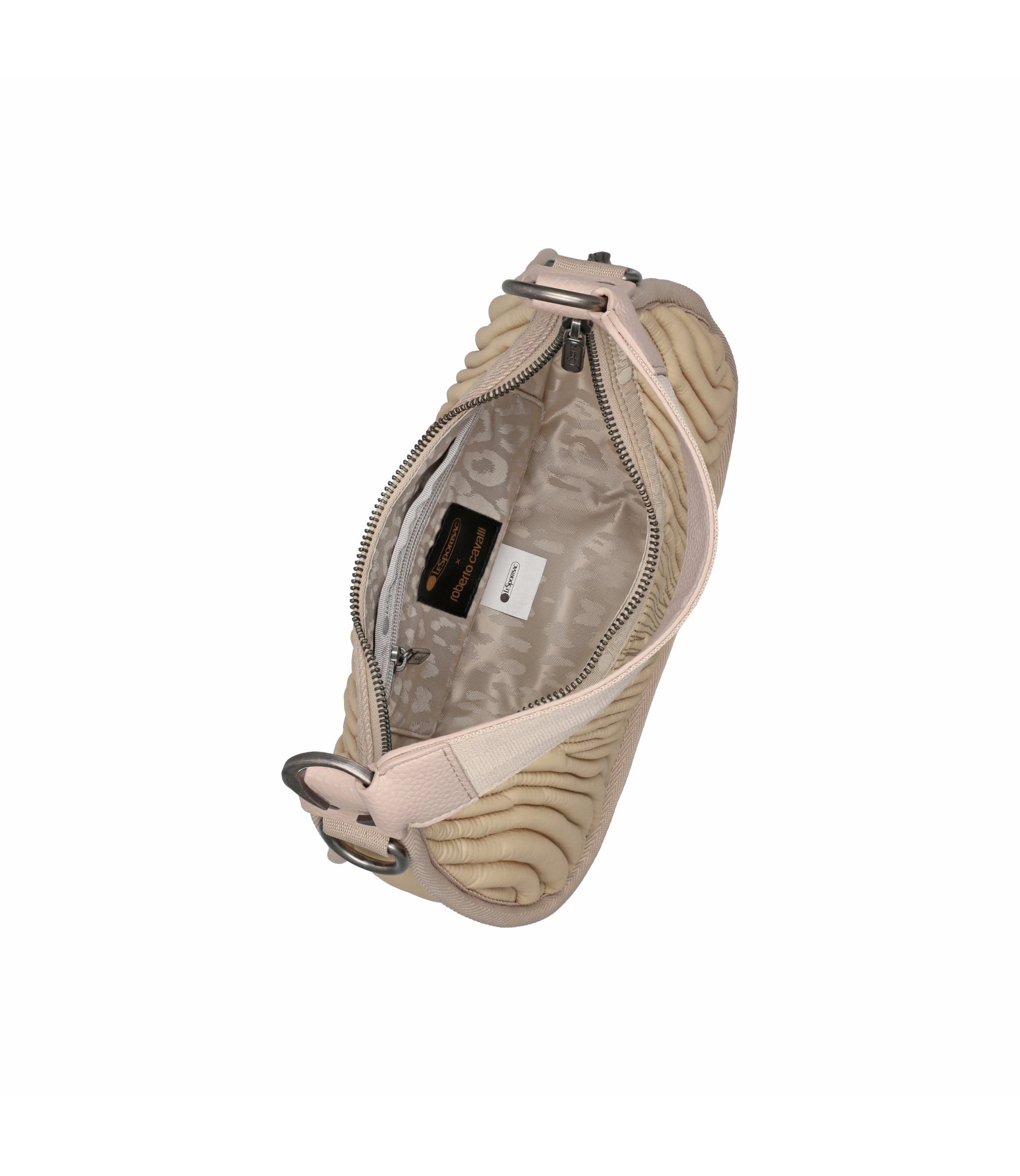 Zip main closure, Interior back wall combination zip and open pocket, 1-5in/3-8 wide top handle (Drop: 8in/20-3cm), 1-5in/3-8cm wide adjustable/detachable shoulder strap (Max Length: 40in/106cm, Min Length: 24in/61cm), Hardware details feature the signature Roberto Cavalli Shape and pebbled faux leather trim details, Lined with black tonal animal print jacquard fabric, Includes a 100% cotton dust bag with drawstring closure and printed gold foil logo detail (17-5H x 16W in, 45H x 40W cm)