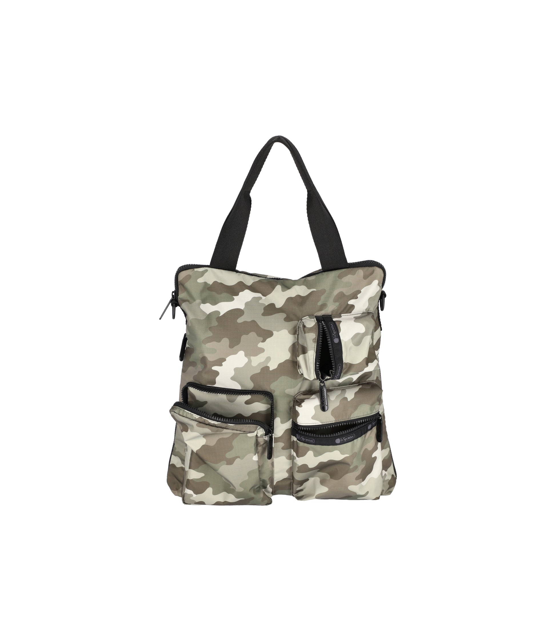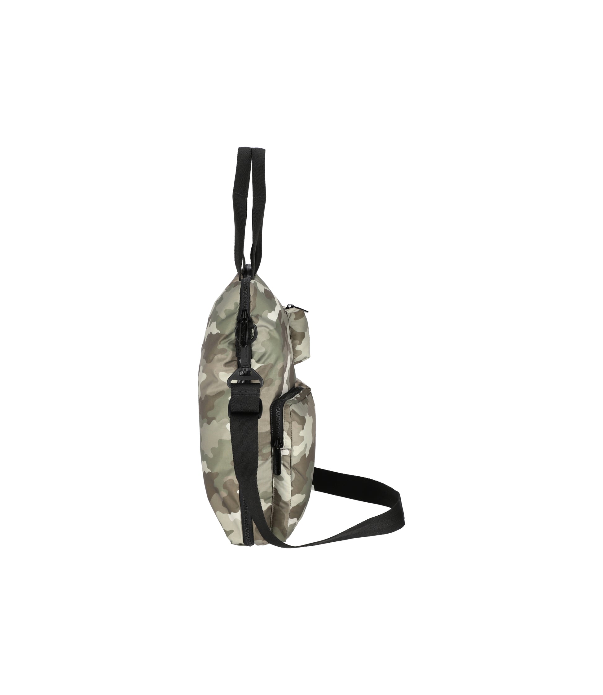 Top handle with Zipped main closure, Adjustable / Detachable shoulder strap, Exterior 3 front box zip pockets, Interior back snap closure pocket, Bottom expandable gusset