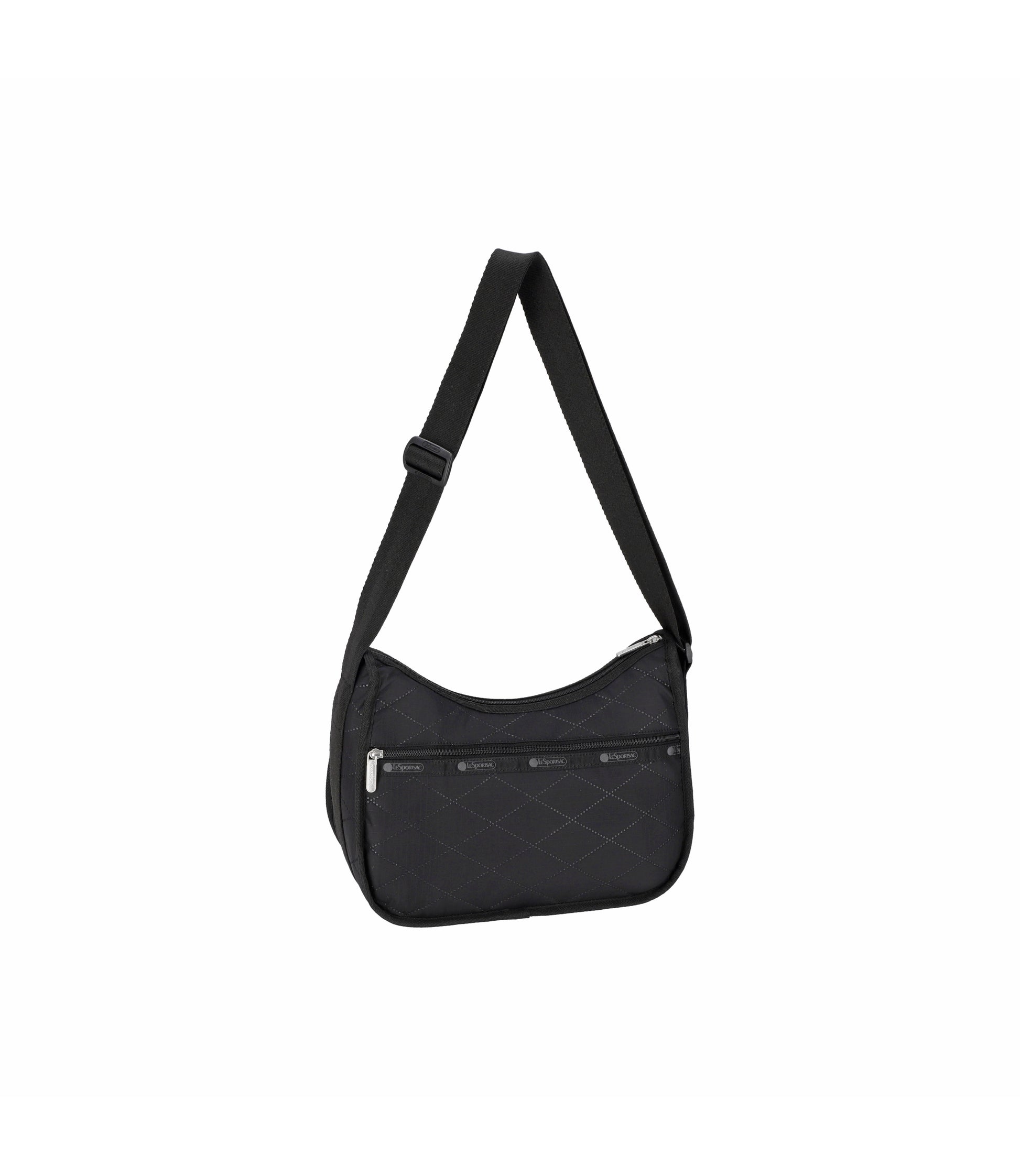 Zipped main closure, Exterior front pocket with zipped closure, Exterior back pocket with zipped closure, Interior back wall hanging zipper pocket, Adjustable shoulder strap (Max. 50in / 127cm), Includes matching pouch with zipped closure