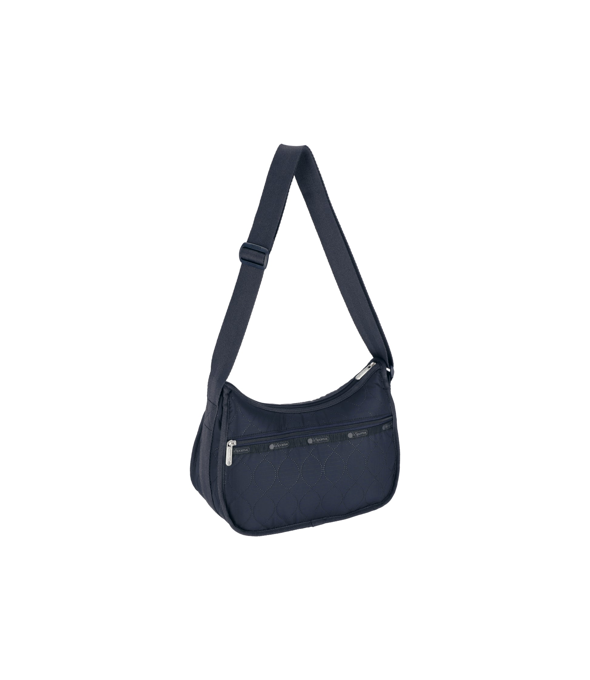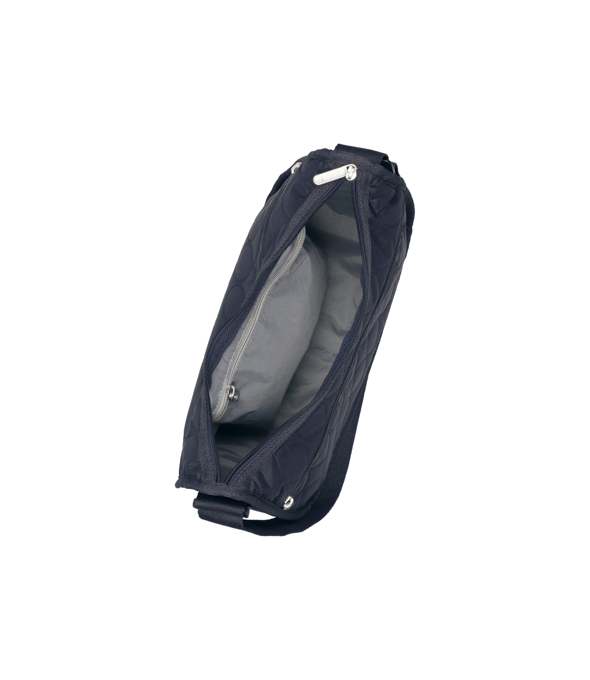 Zipped main closure, Exterior front pocket with zipped closure, Exterior back pocket with zipped closure, Interior back wall hanging zipper pocket, Adjustable shoulder strap (Max. 50in / 127cm), Includes matching pouch with zipped closure