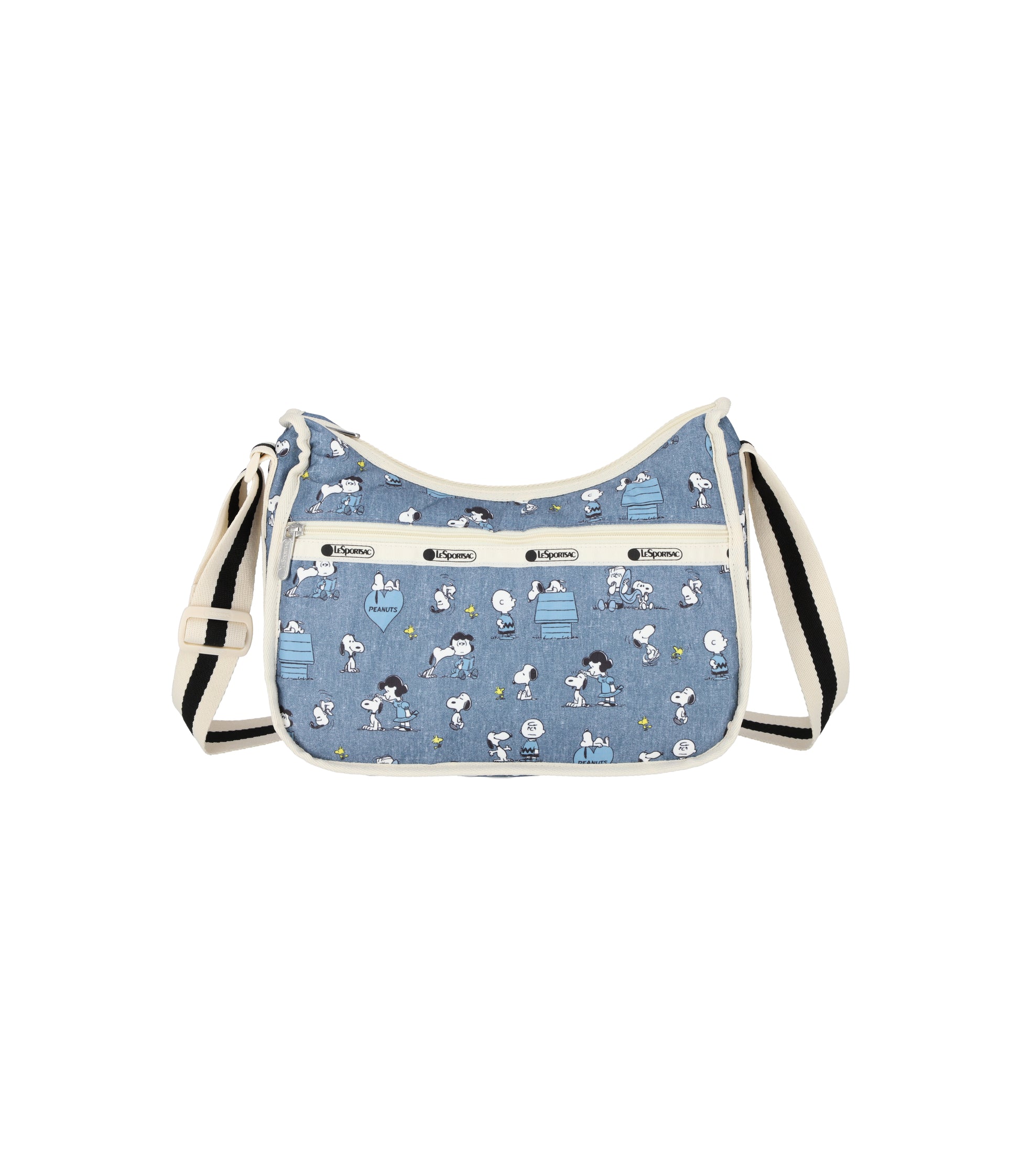 Zipped main closure, Exterior front pocket with zipped closure, Exterior back pocket with zipped closure, Interior back wall hanging zipper pocket, Adjustable shoulder strap (Max. 50in / 127cm), Includes matching pouch with zipped closure
