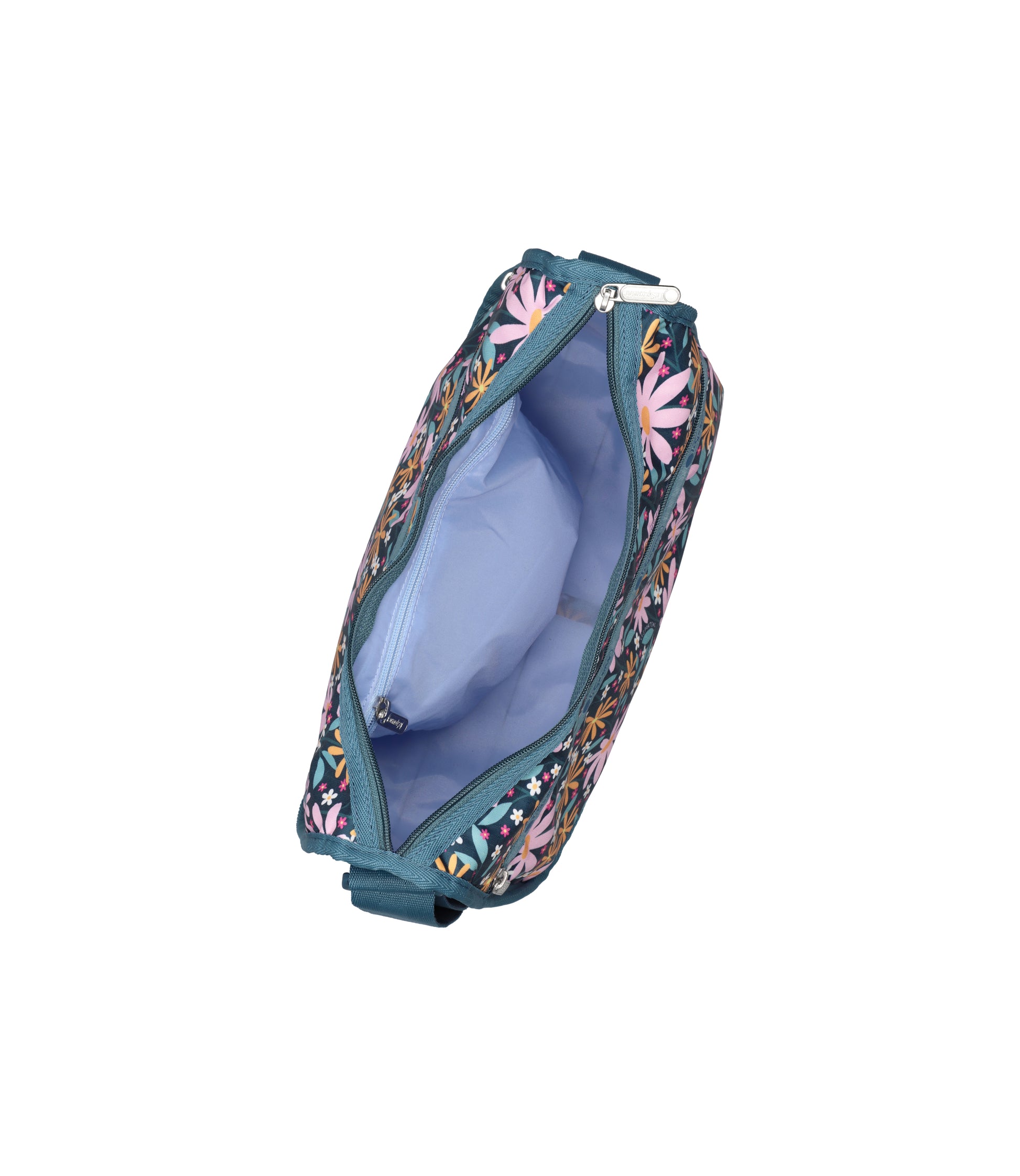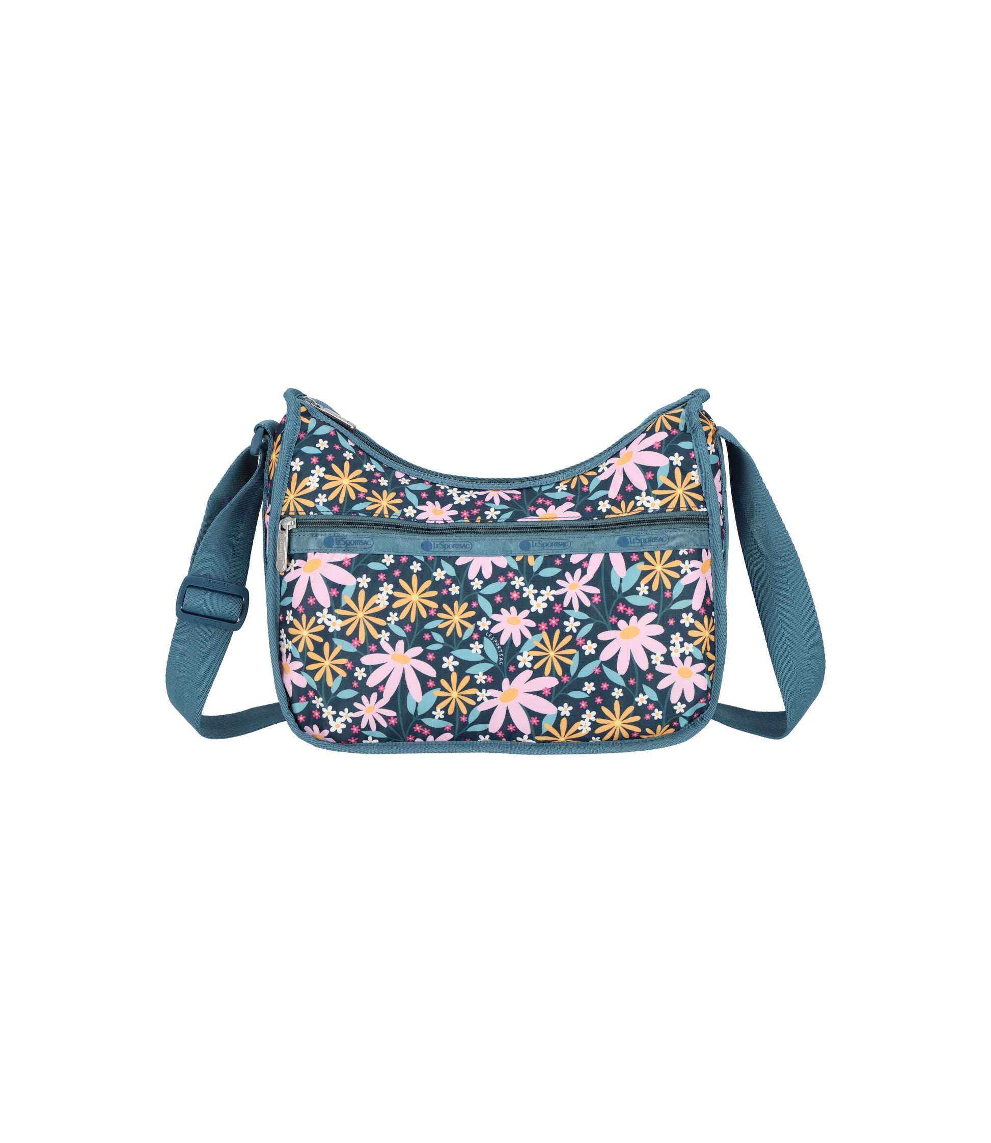 Zipped main closure, Exterior front pocket with zipped closure, Exterior back pocket with zipped closure, Interior back wall hanging zipper pocket, Adjustable shoulder strap (Max. 50in / 127cm), Includes matching pouch with zipped closure