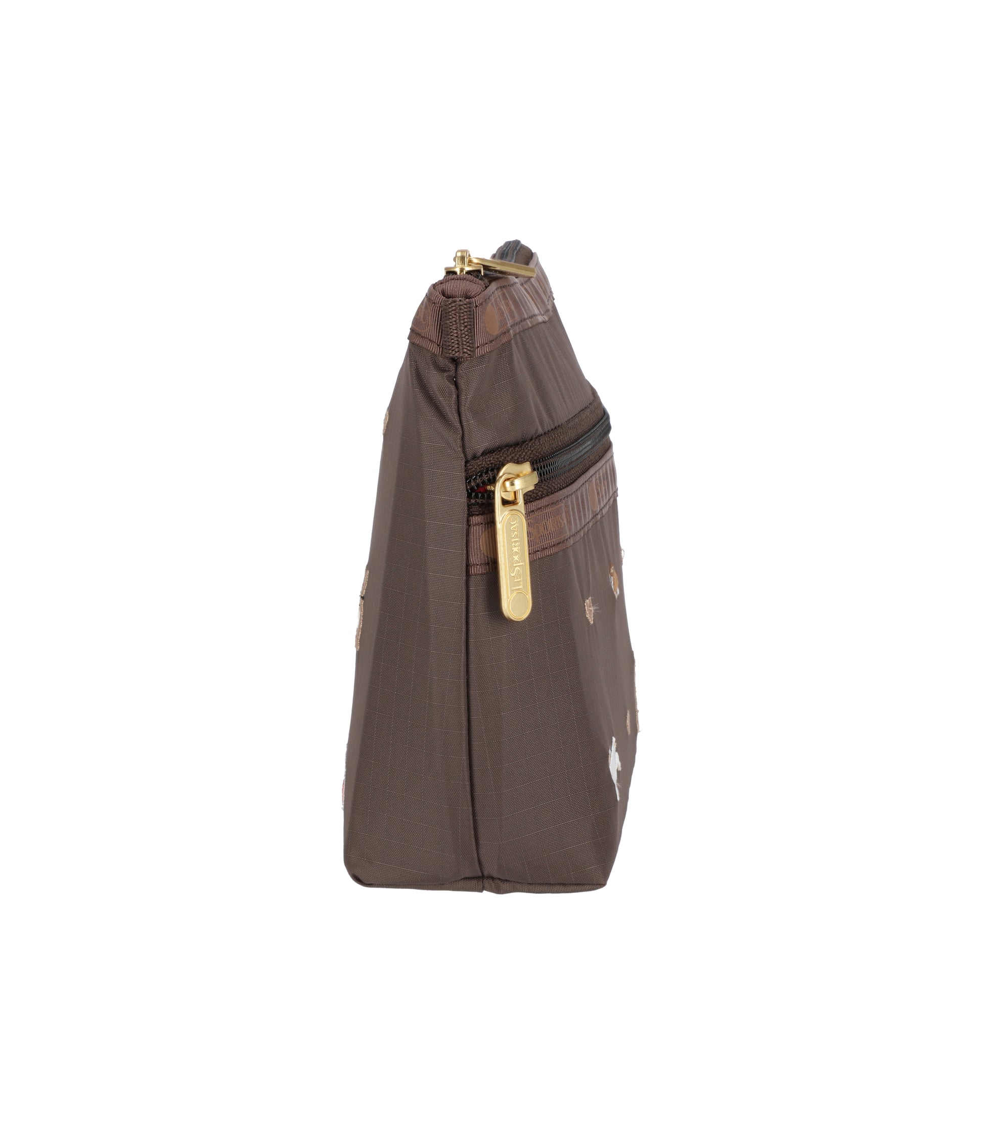 Zipped main closure, Exterior front pocket with zip closure, Side loops.