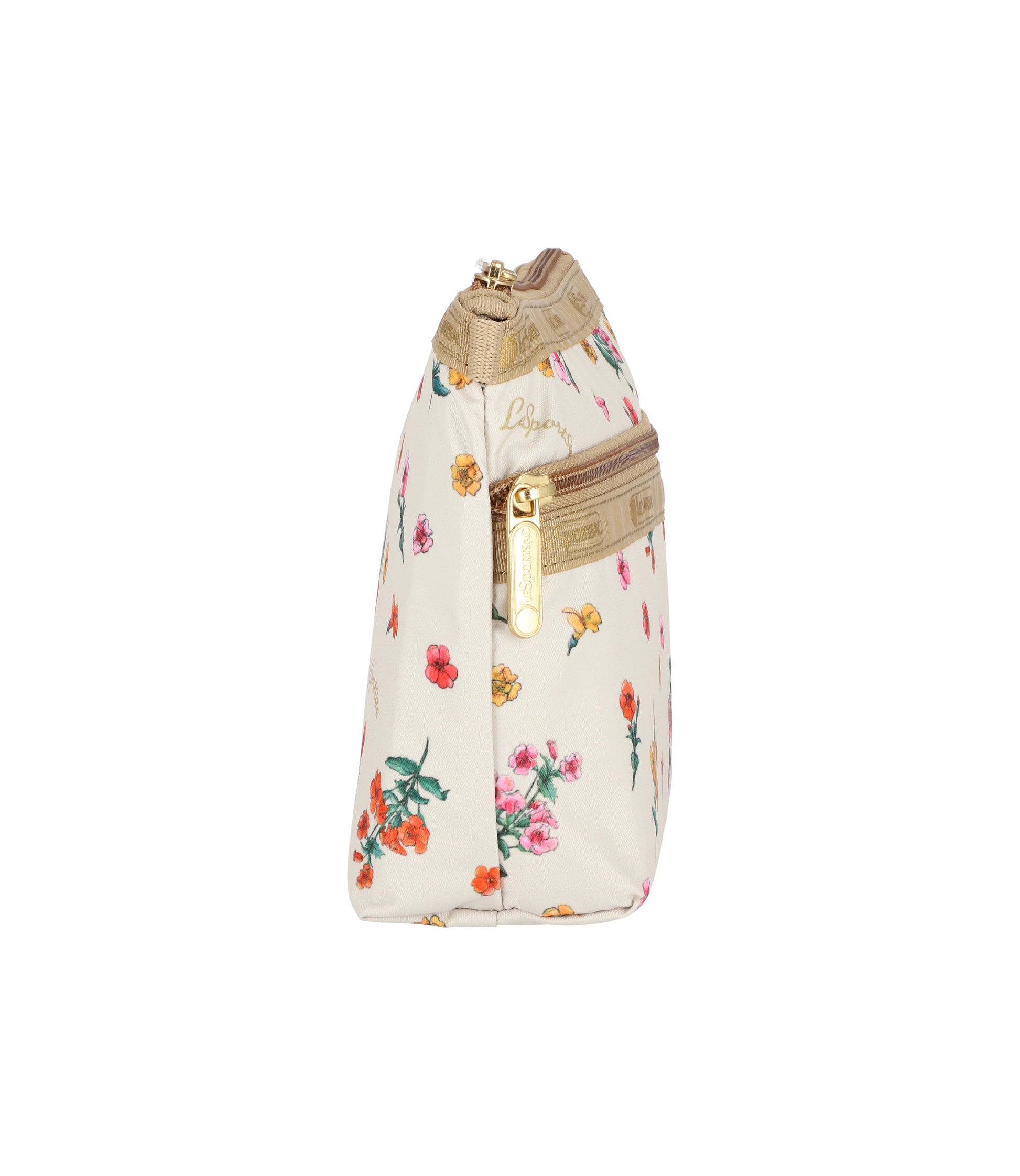 Zipped main closure, Exterior front pocket with zip closure, Side loops.