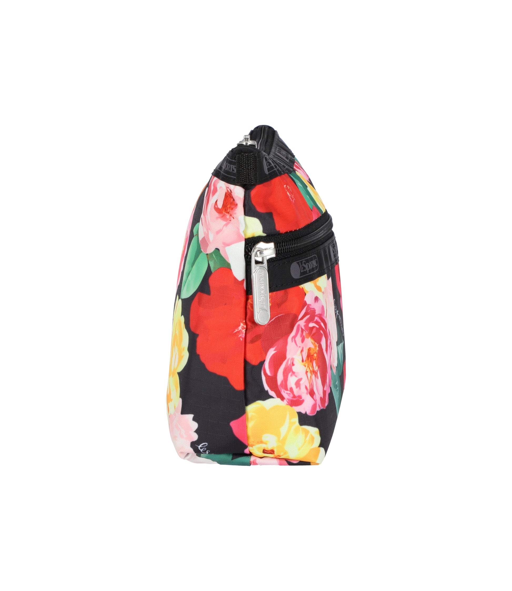 Zipped main closure, Exterior front pocket with zip closure, Side loops.