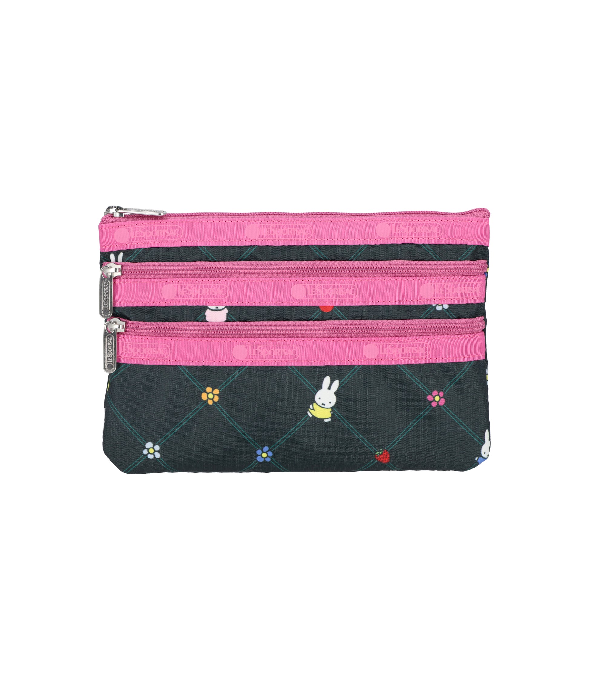 This 3-Zip Cosmetic is the perfect bag to hold all of your necessary travel accessories! Pack your passport, currencies and personal care items for the perfect on the go organizer. Zipped main closure, Two front pockets with zipped closures