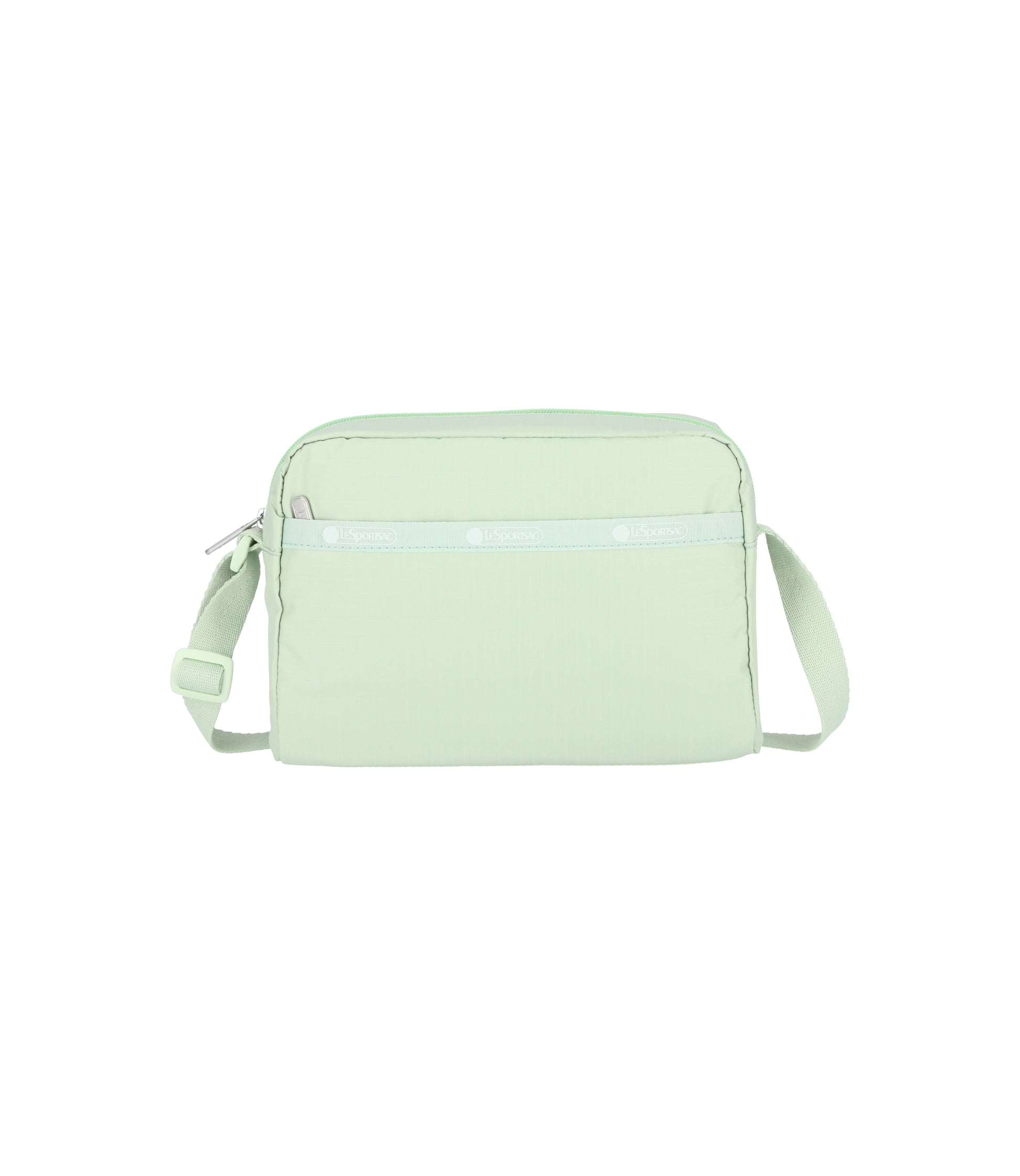 Zip top main closure, Exterior front pocket with zip closure, Exterior back pocket with zip closure, Adjustable crossbody strap (52in/132.08cm), Two interior back wall open pockets, Plastic hardware