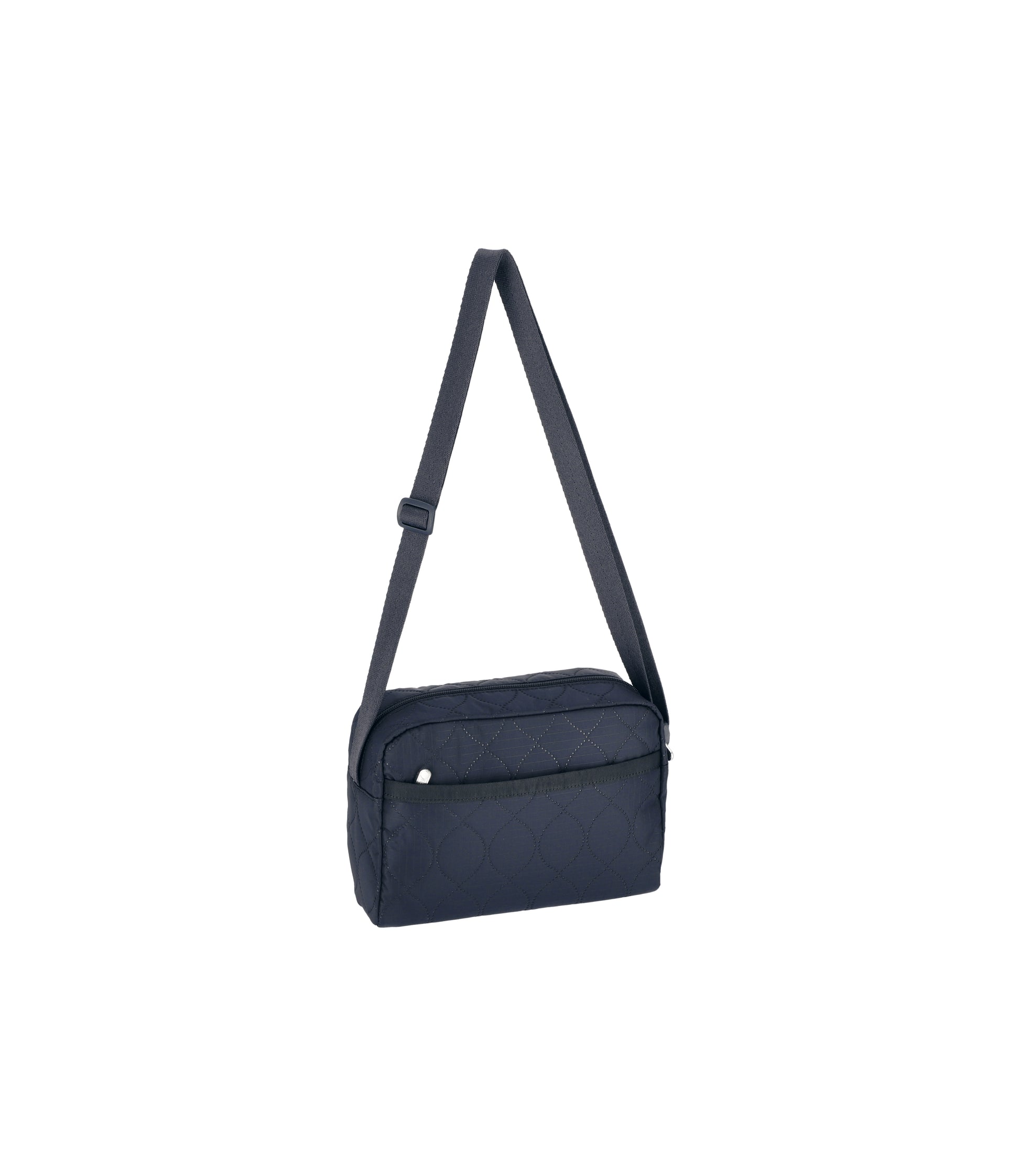 Zip top main closure, Exterior front pocket with zip closure, Exterior back pocket with zip closure, Adjustable crossbody strap (52in/132.08cm), Two interior back wall open pockets, Plastic hardware