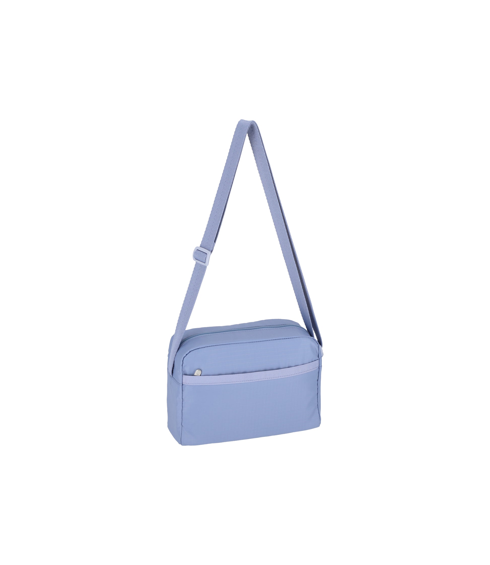 Zip top main closure, Exterior front pocket with zip closure, Exterior back pocket with zip closure, Adjustable crossbody strap (52in/132.08cm), Two interior back wall open pockets, Plastic hardware