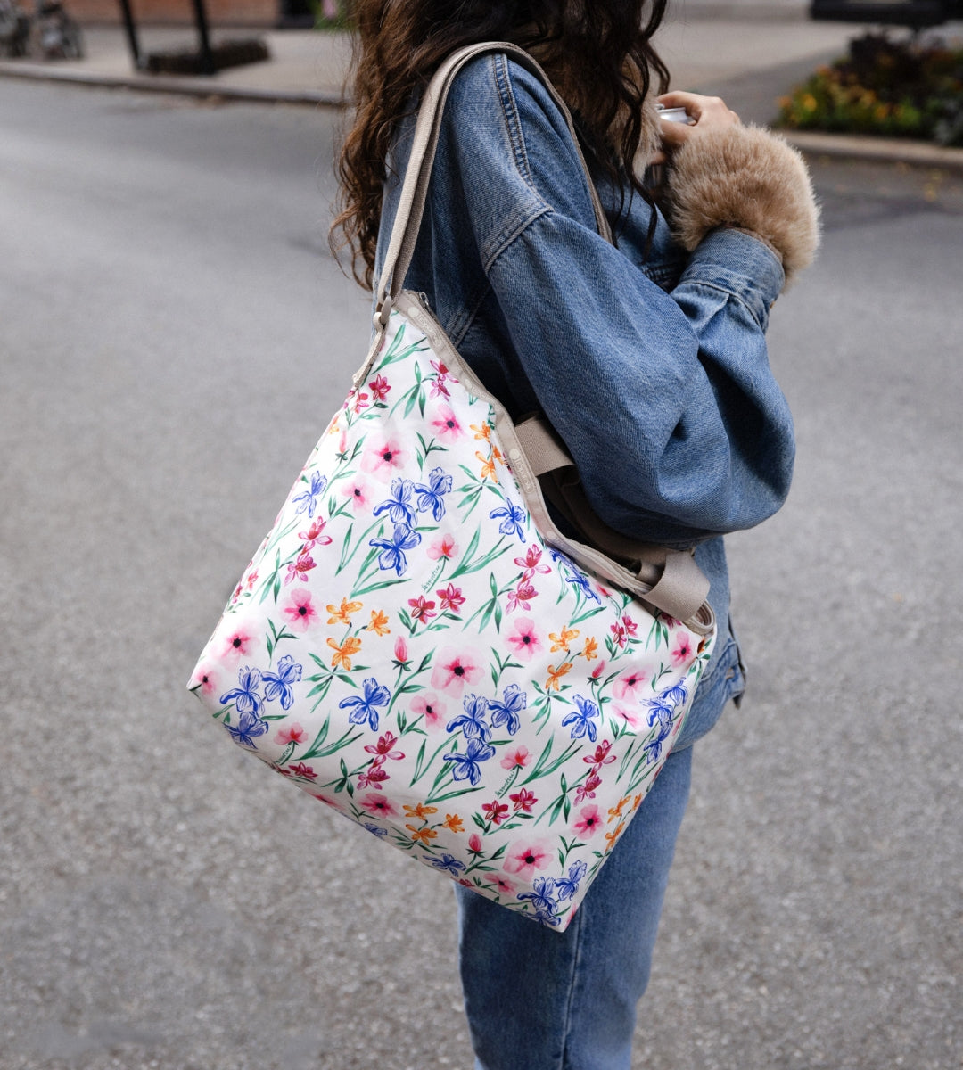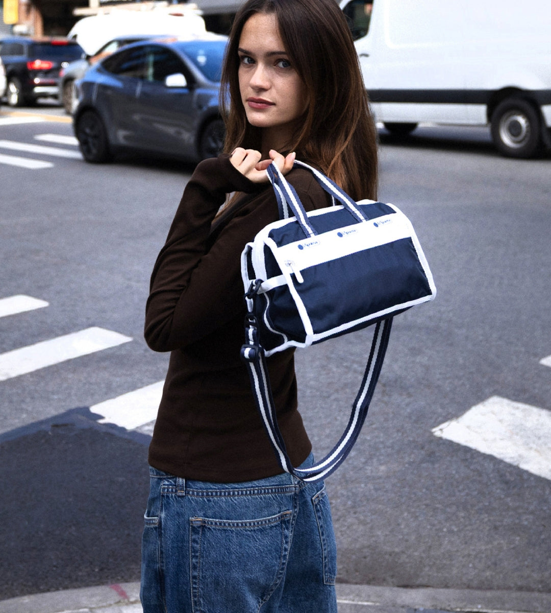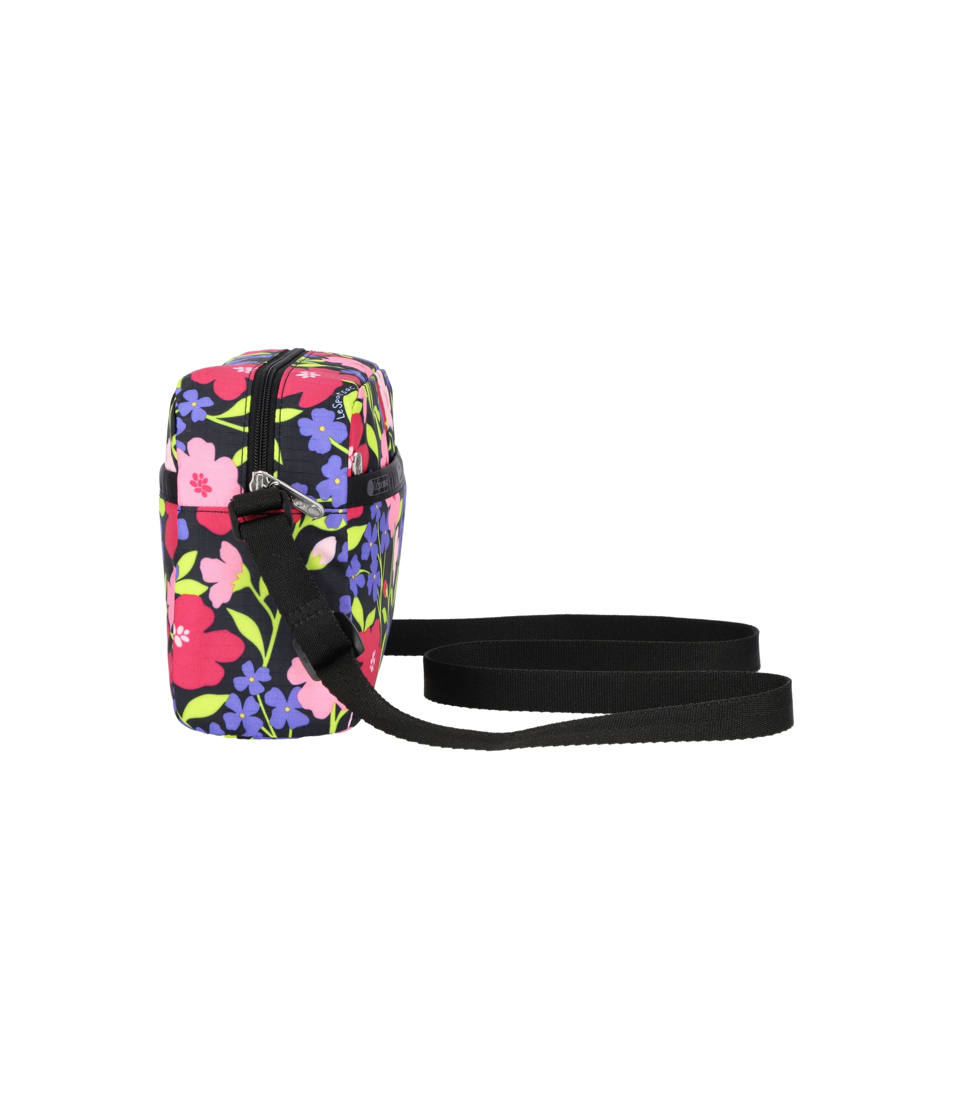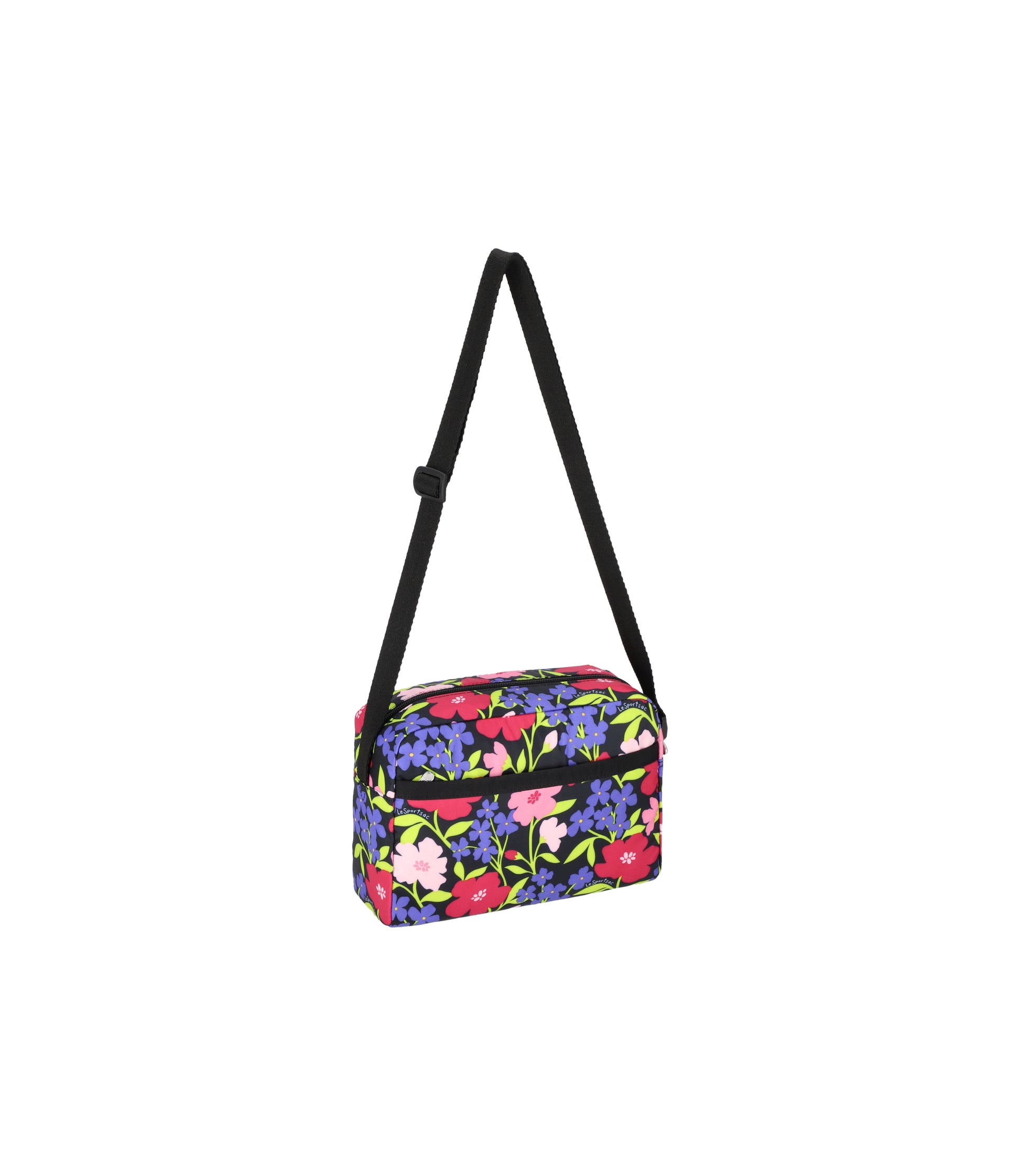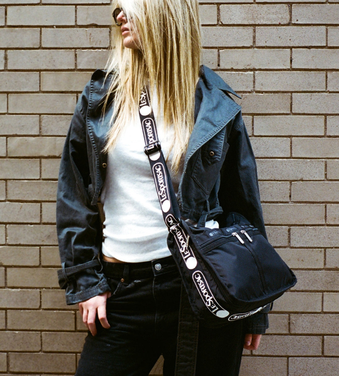 Zip top main closure, Exterior front pocket with zip closure, Exterior back pocket with zip closure, Adjustable crossbody strap (52in/132.08cm), Two interior back wall open pockets, Plastic hardware