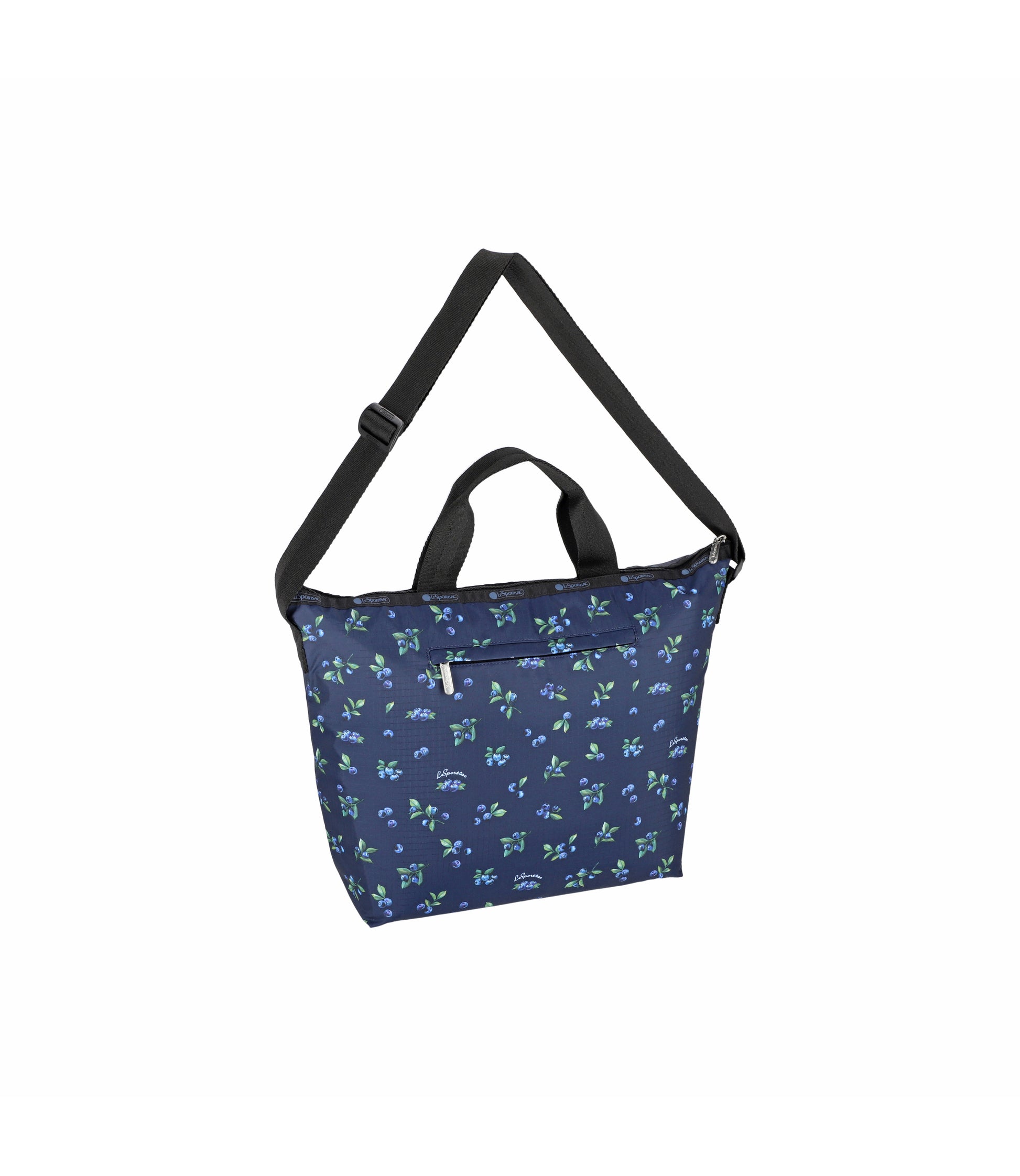 Zip top main closure, 1.5in (3.81cm) Wide pinched top handles (Drop: 5in /12.7cm), Adjustable crossbody strap (1.5in/3.81cm wide with a maximum extension of 52in/132cm), Exterior back panel pocket with zip closure, Two interior front wall open pockets, Interior back wall open pocket
