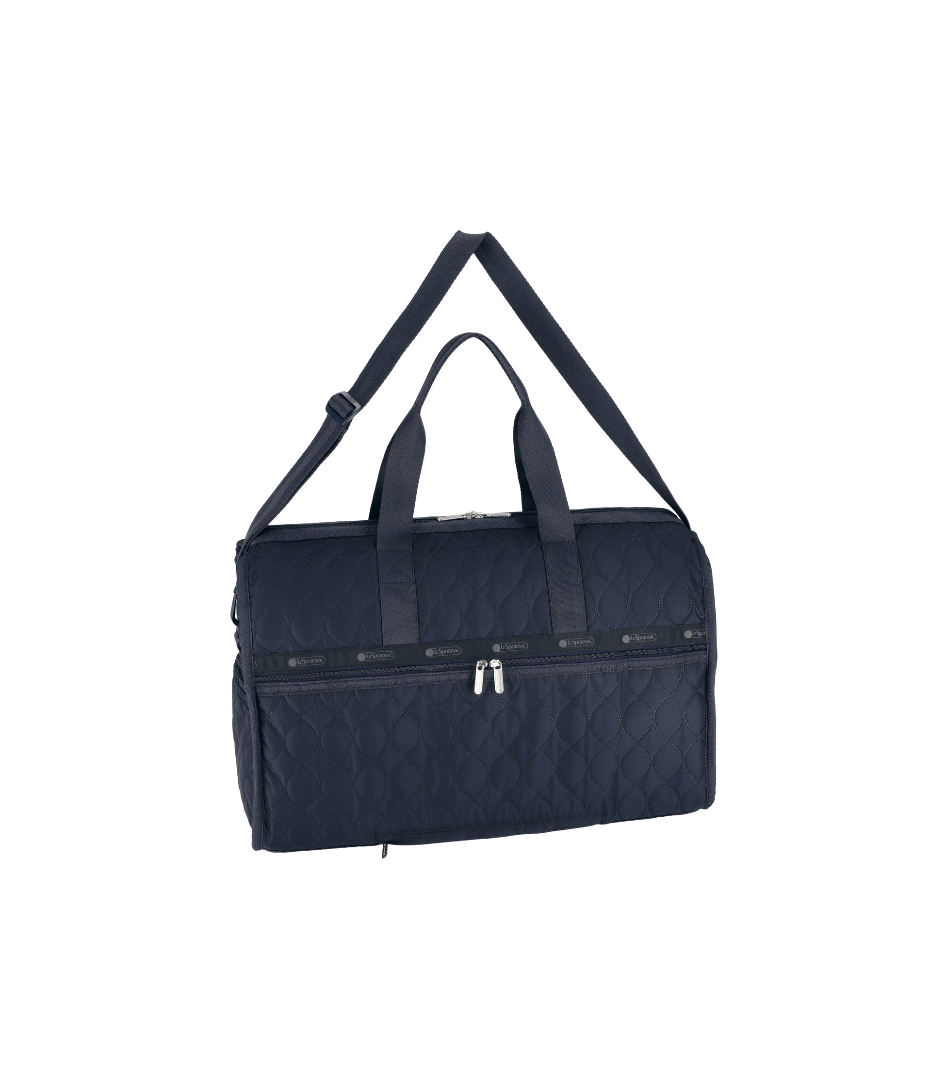 Zip main closure with dual zipper pulls, 8.5in (21.59cm) Top handle drop, 1.5in (3.81cm) Wide adjustable/detachable crossbody strap (Max. 42in/106.68cm), Exterior front panel zipper pocket, Exterior back panel zip closure pocket with dual zipper pulls and a bottom zipper to convert pocket into a sleeve (to slide over rolling luggage handles), Two exterior side pockets with zip closures, Three interior front wall open pockets, Interior back wall combination zip/open pocket