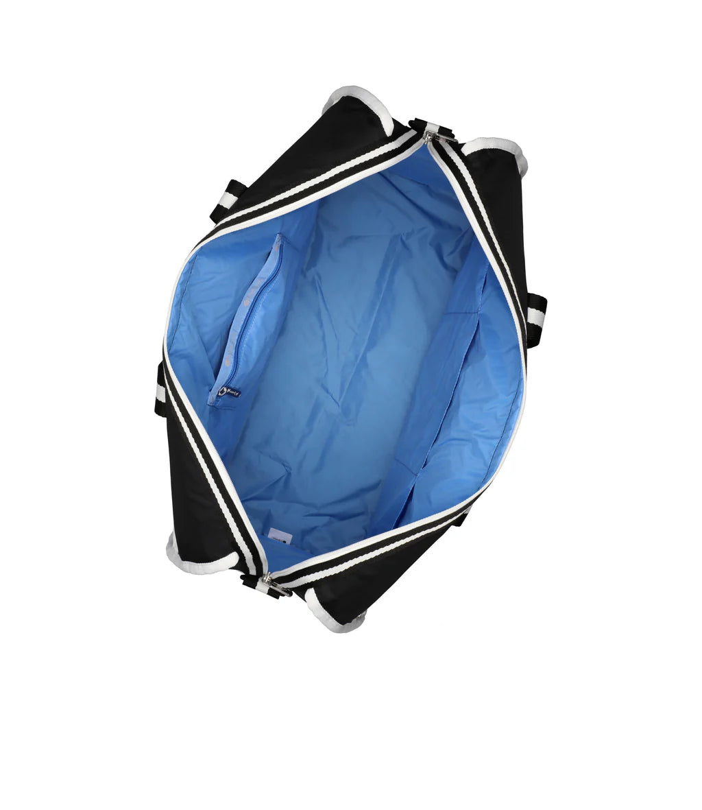 Zip main closure with dual zipper pulls, 8.5in (21.59cm) Top handle drop, 1.5in (3.81cm) Wide adjustable/detachable crossbody strap (Max. 42in/106.68cm), Exterior front panel zipper pocket, Exterior back panel zip closure pocket with dual zipper pulls and a bottom zipper to convert pocket into a sleeve (to slide over rolling luggage handles), Two exterior side pockets with zip closures, Three interior front wall open pockets, Interior back wall combination zip/open pocket.