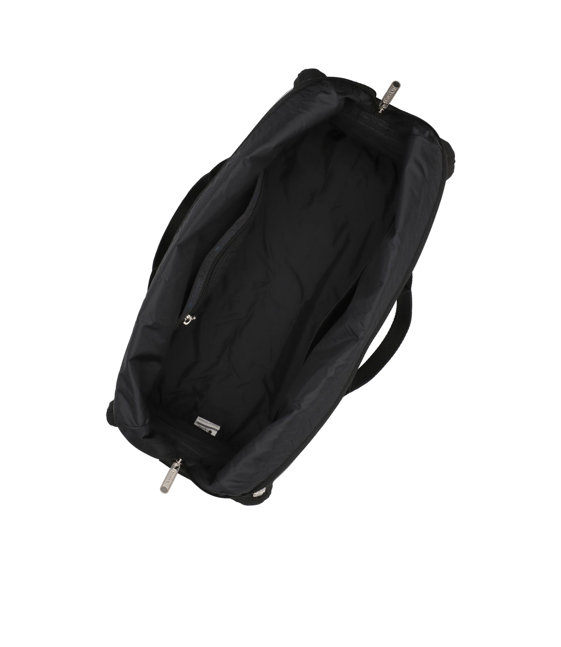 Zip main closure with dual zipper pulls, 7.5in (19.05cm) Top handle drop, 1.5in (3.81cm) Wide adjustable/detachable crossbody strap (Max. 50in/127cm), Exterior front panel zipper pocket, Exterior back panel zip closure pocket with dual zipper pulls and a bottom zipper to convert pocket into a sleeve (to slide over rolling luggage handles), Two exterior side pockets with zip closures, Three interior front wall open pockets, Interior back wall combination zip/open pocket