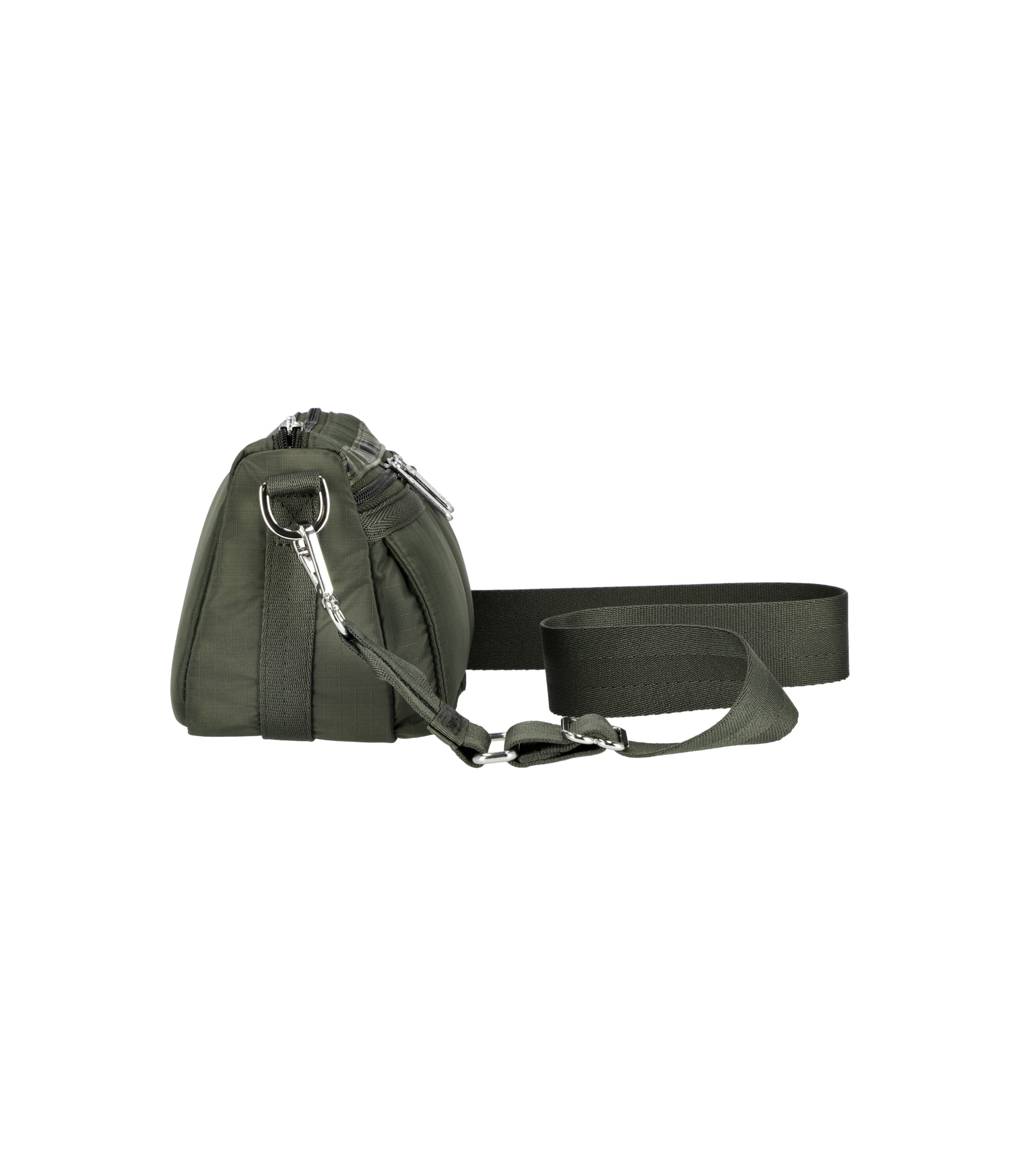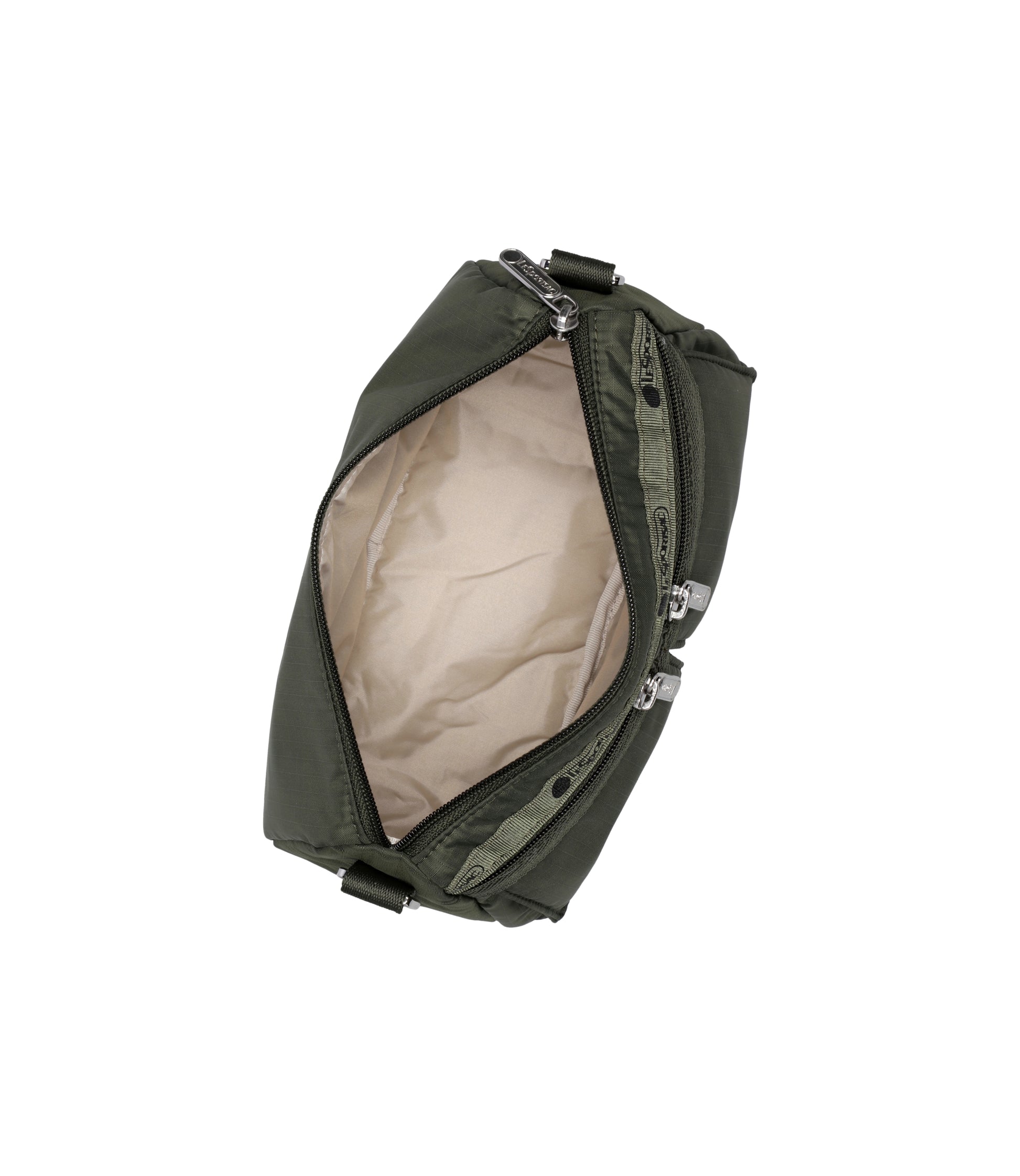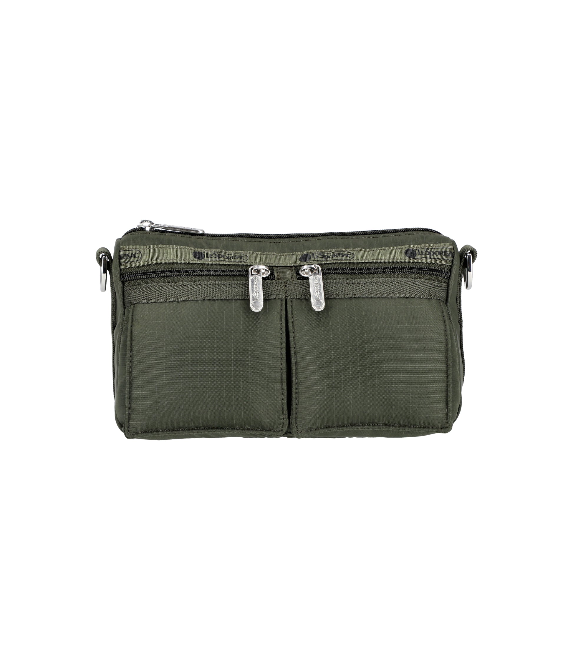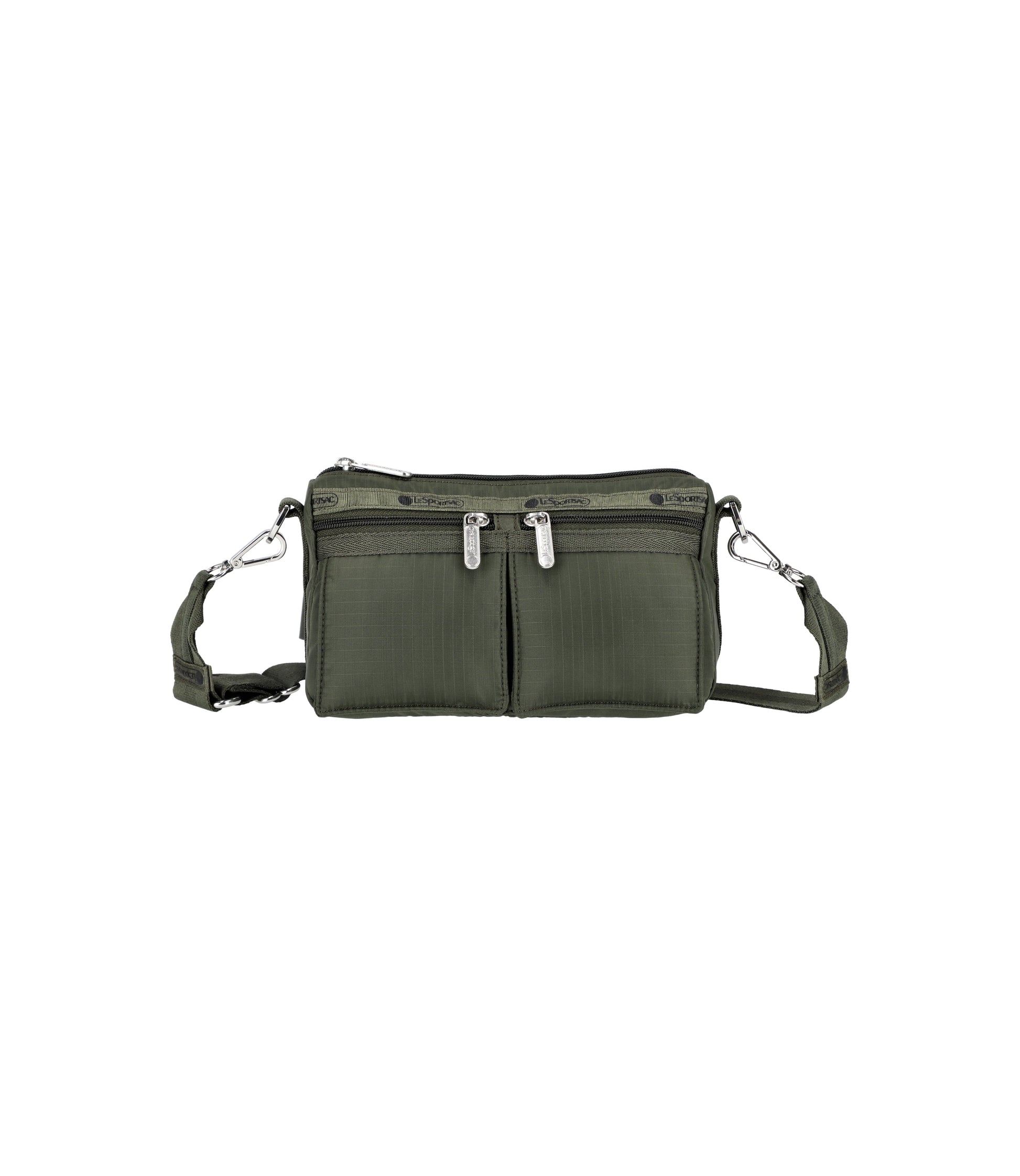 Zip top main closure, Two exterior front box pockets with zip closures, 2in/5cm wide adjustable crossbody strap (Max Length: 50in/127cm, Min Length: 27in/68.6cm)