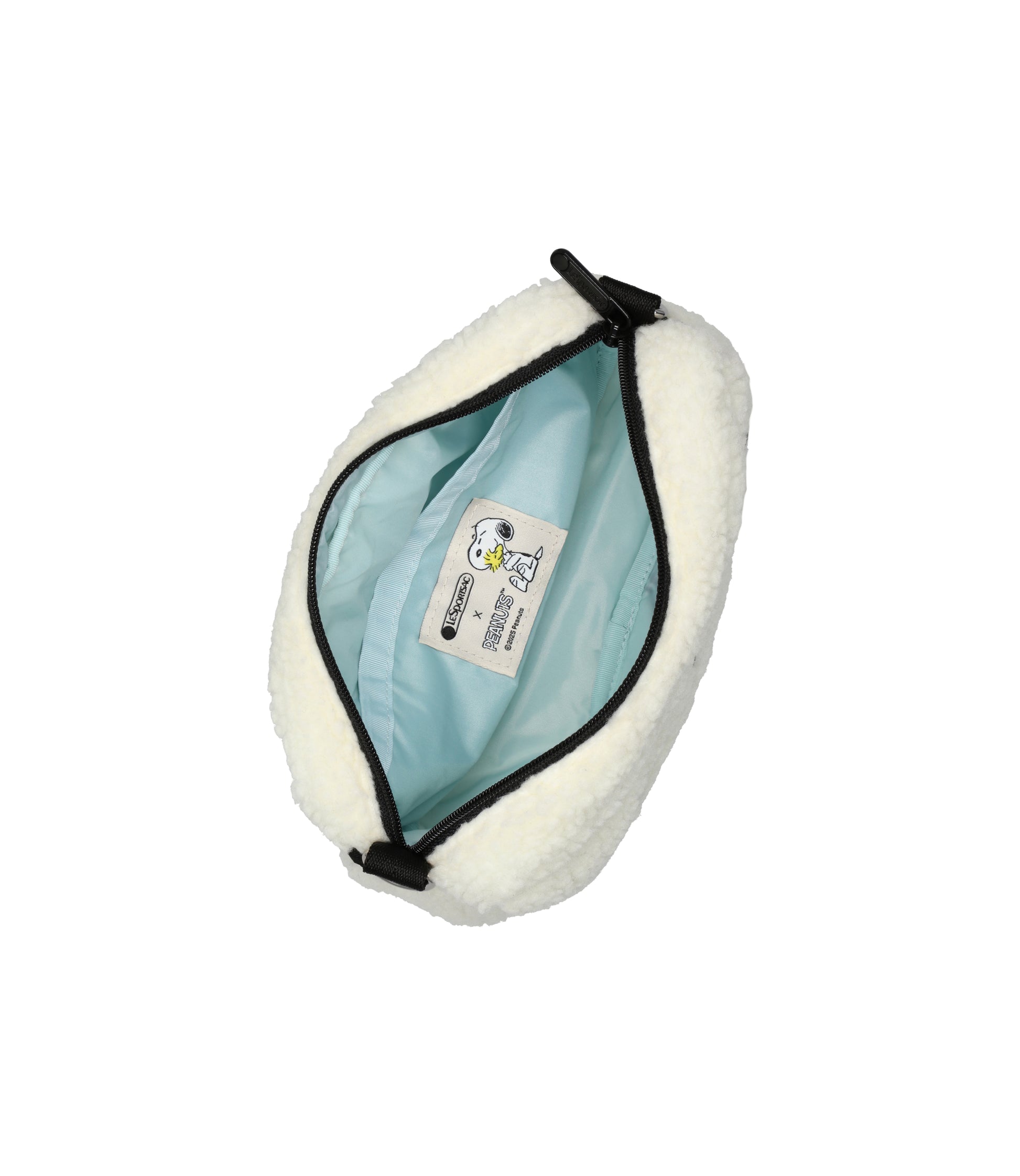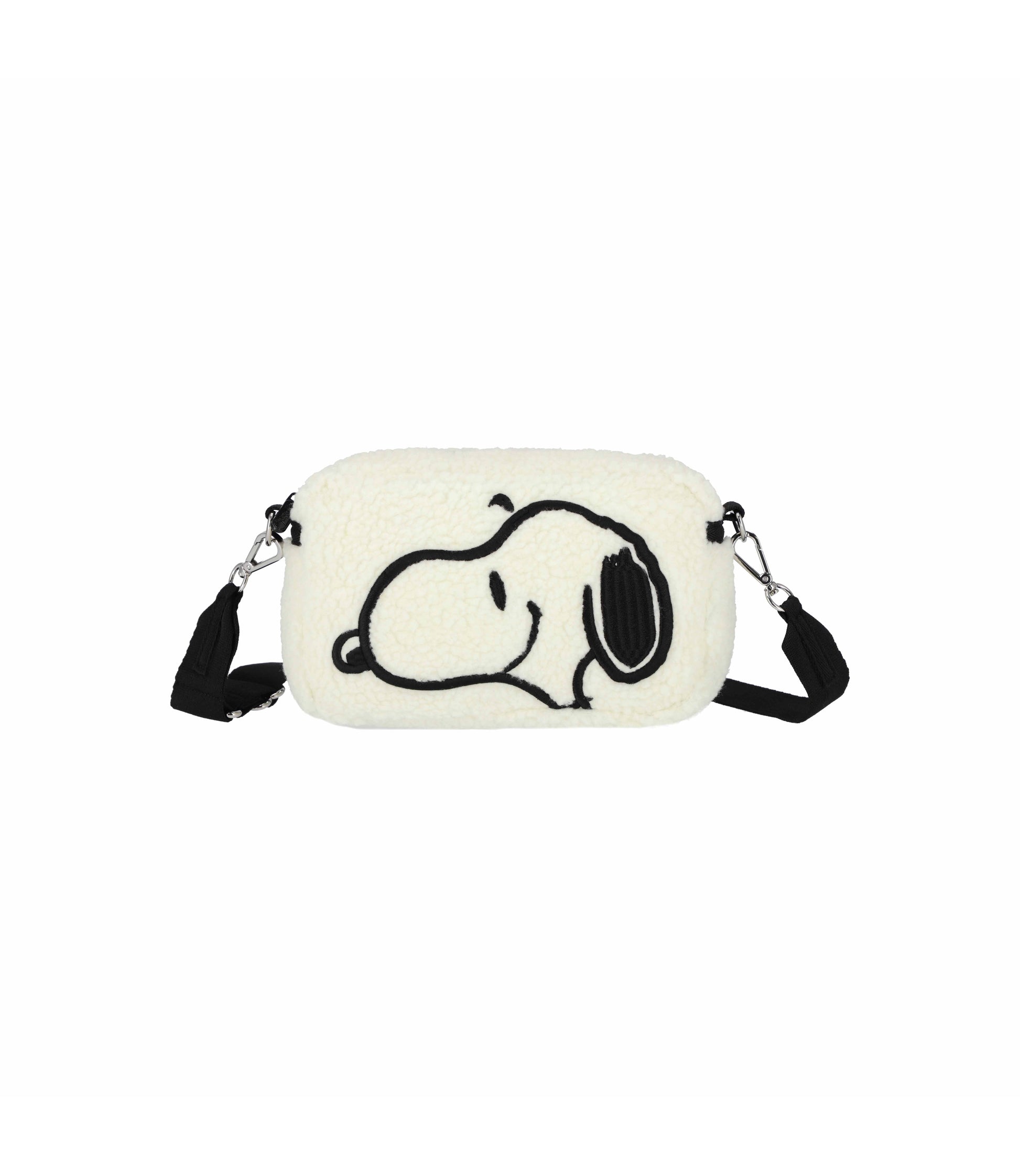 Features faux shearling (vegan) fabric with an embroidered design on the front. Please spot clean only, as continuous washing or rough treatment may cause damage.