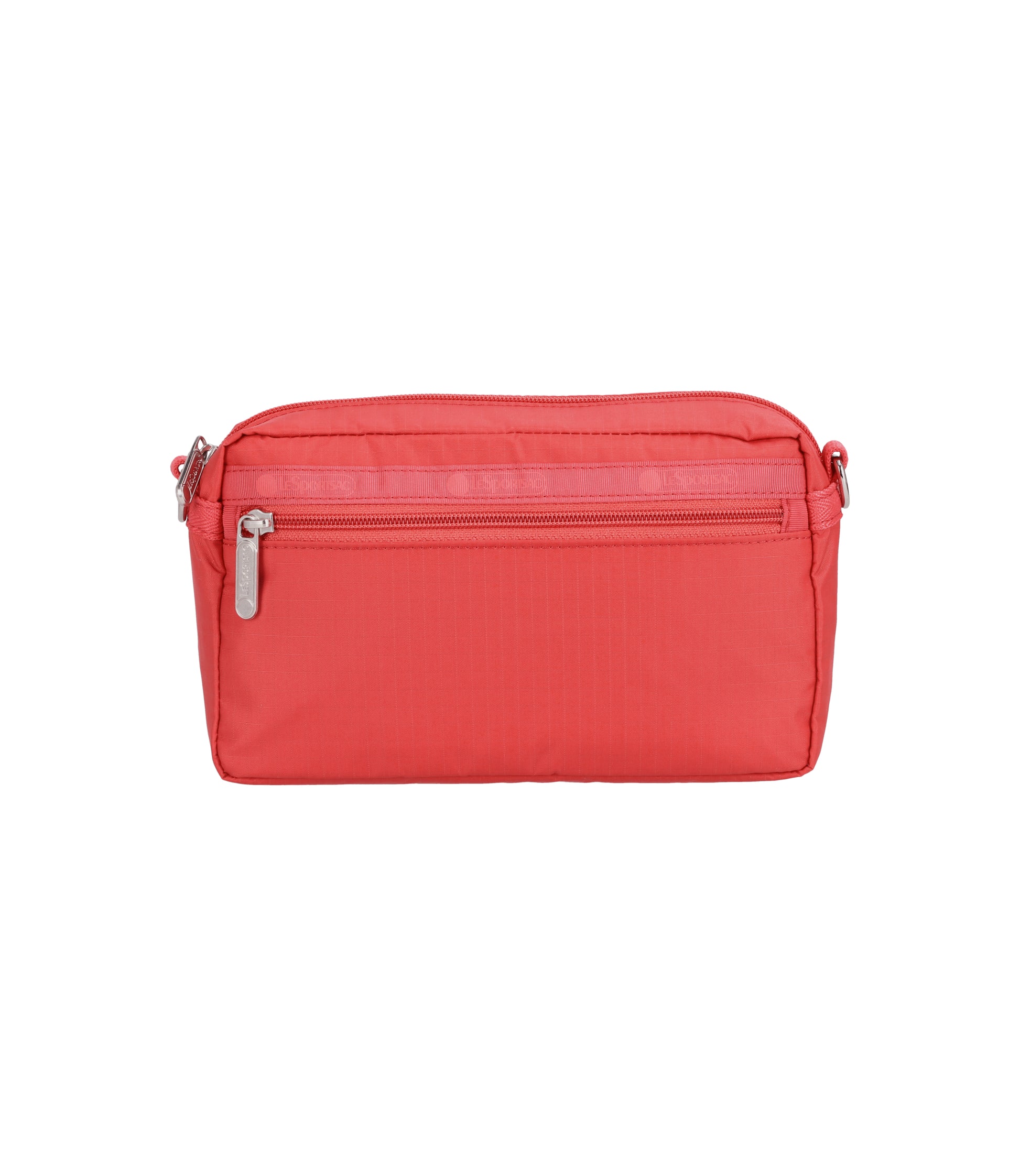 Zip main closure, Exterior front zip pocket, Exterior back zip pocket, Interior back wall open pocket, 1.5in/3.8cm wide adjustable/detachable shoulder strap. (Max length: 44.48 in/113 cm, Min Length: 25.78 in/65.5 cm)