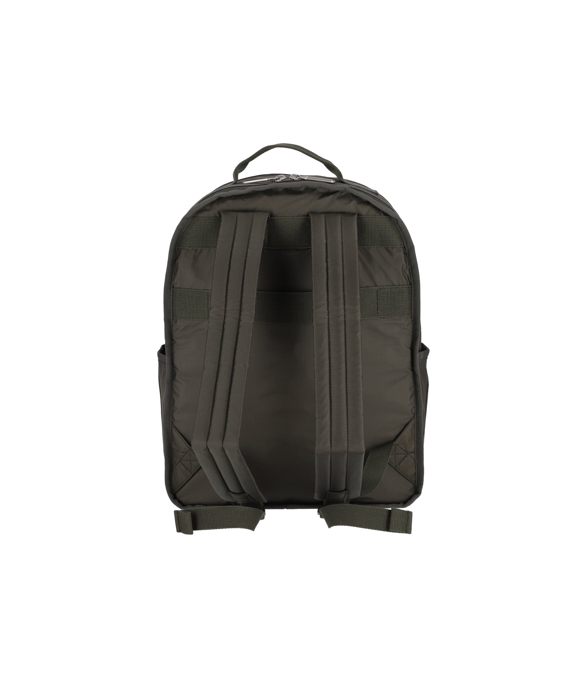 The Essential Carryall Backpack offers two zip compartments, a padded laptop pocket, and multiple interior organizers, including elastic loops for pens. Its adjustable padded shoulder straps and exterior luggage sleeve provide comfort and travel-friendly convenience. Purchase this lightweight backpack for structured, everyday storage.