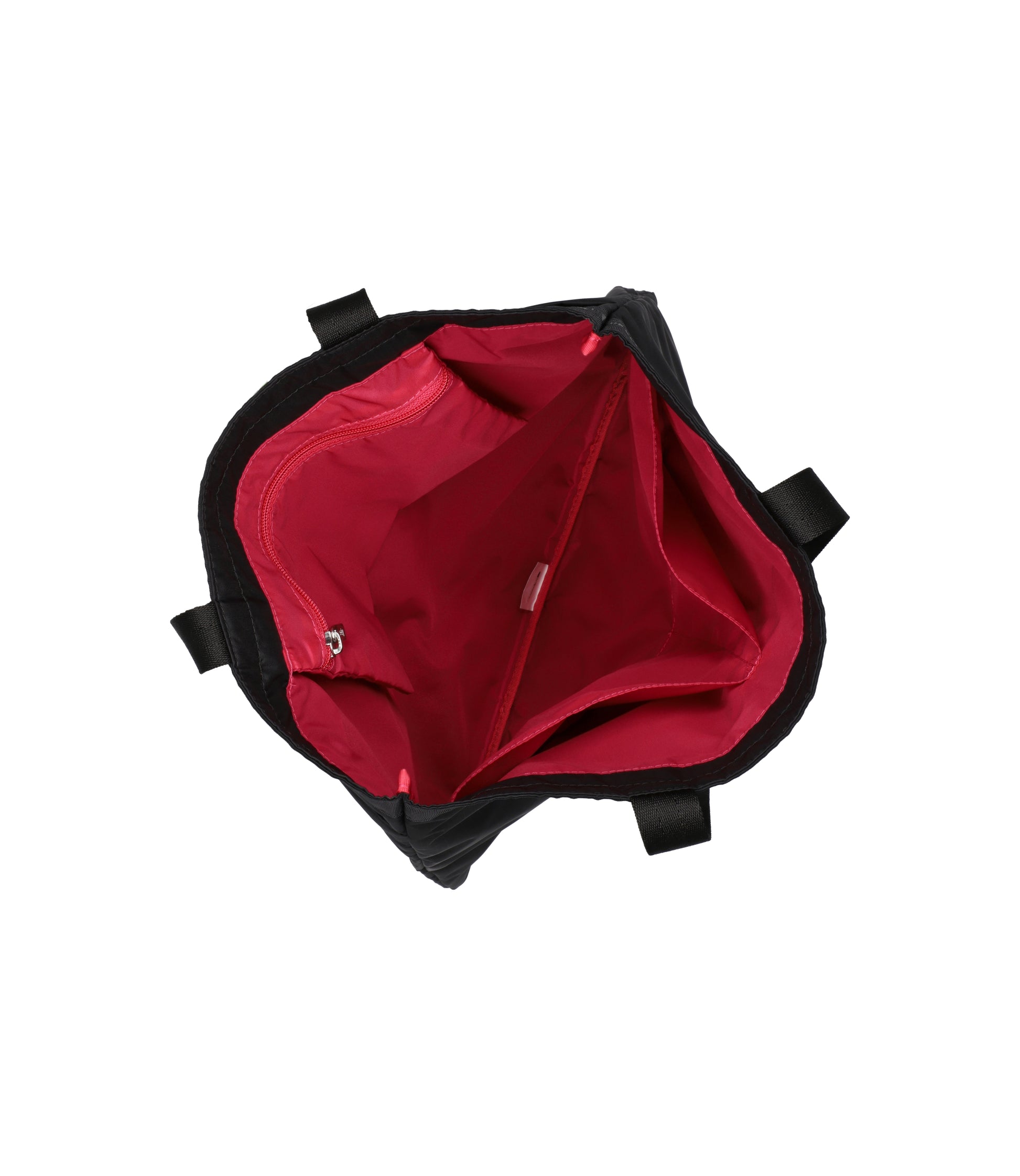 Open top main compartment, Exterior back zip pocket, Two interior front wall open pockets, Interior back wall zip pocket, 1in/2.5cm wide top handles (Drop: 10in/25.5cm)