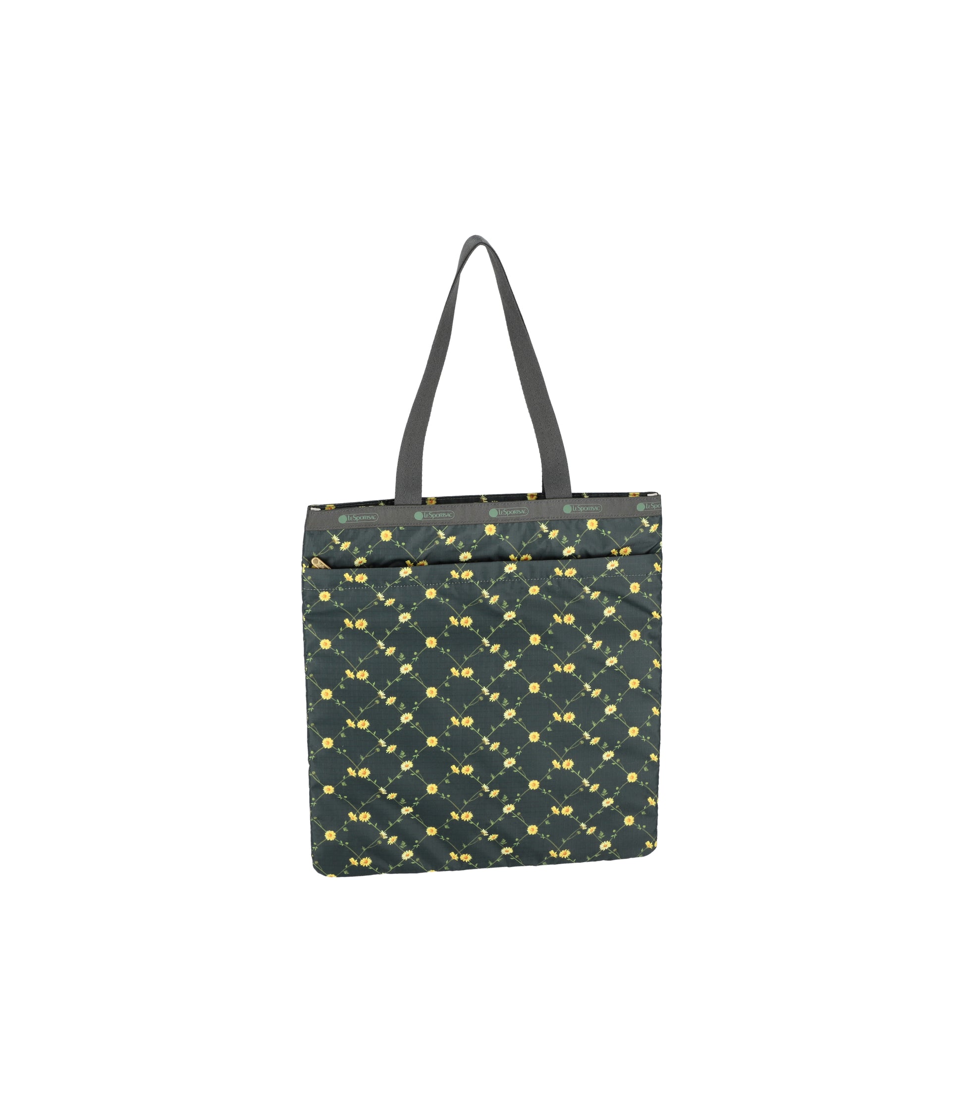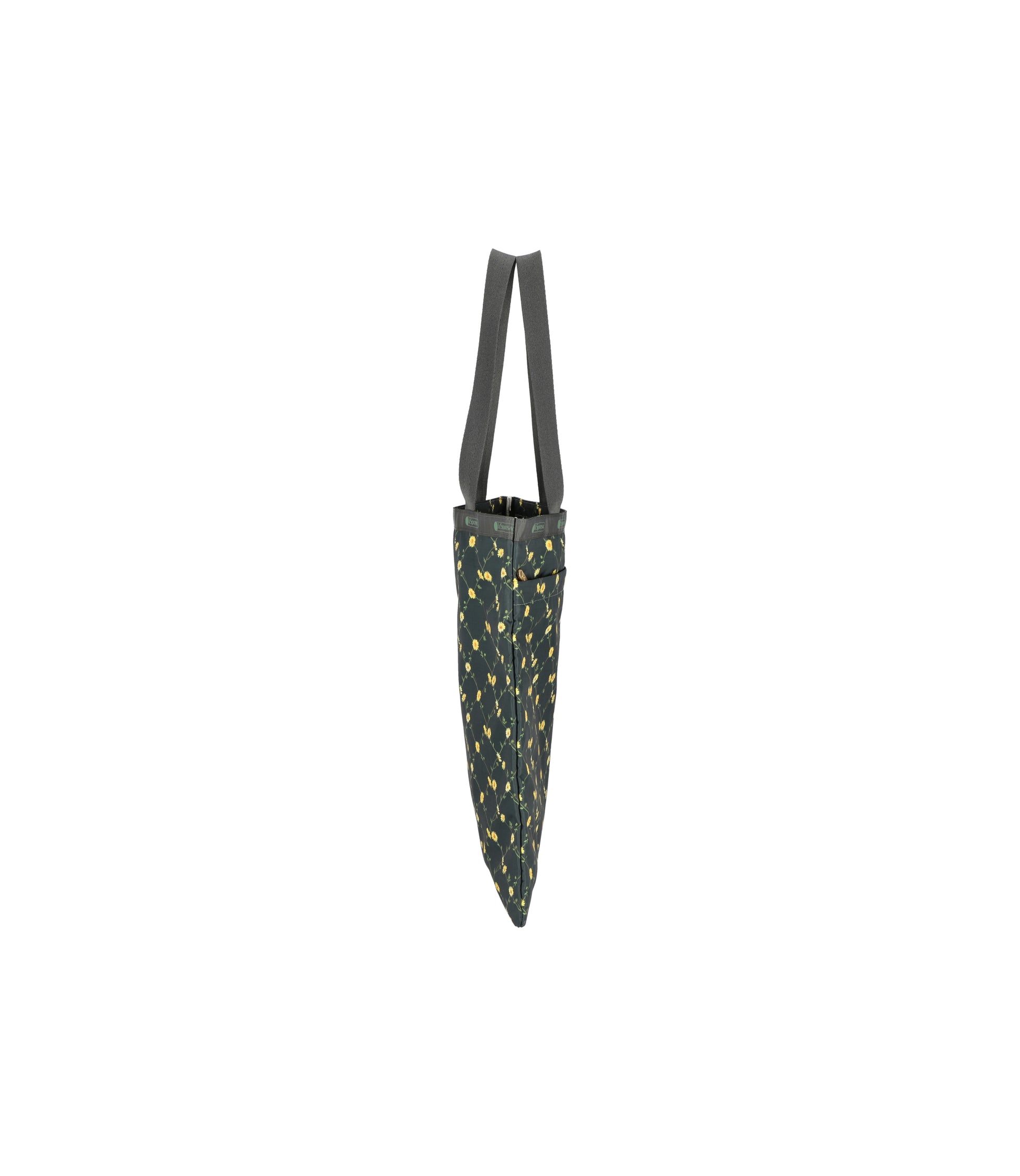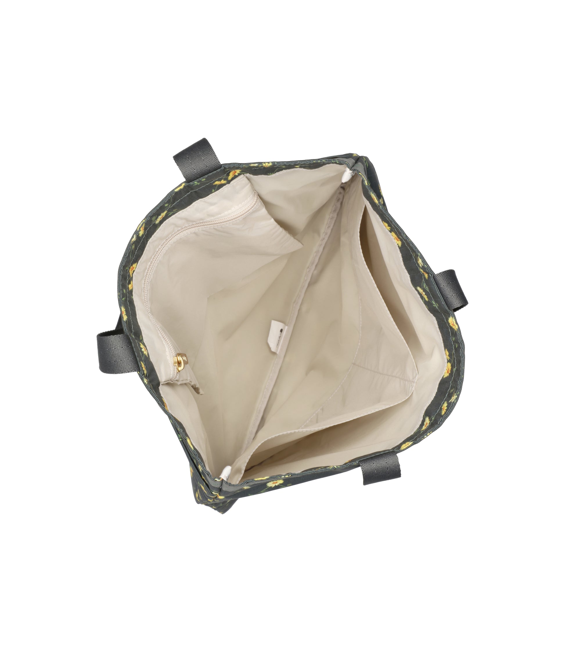 Open top main compartment, Exterior back zip pocket, Two interior front wall open pockets, Interior back wall zip pocket, 1in/2.5cm wide top handles (Drop: 10in/25.5cm)