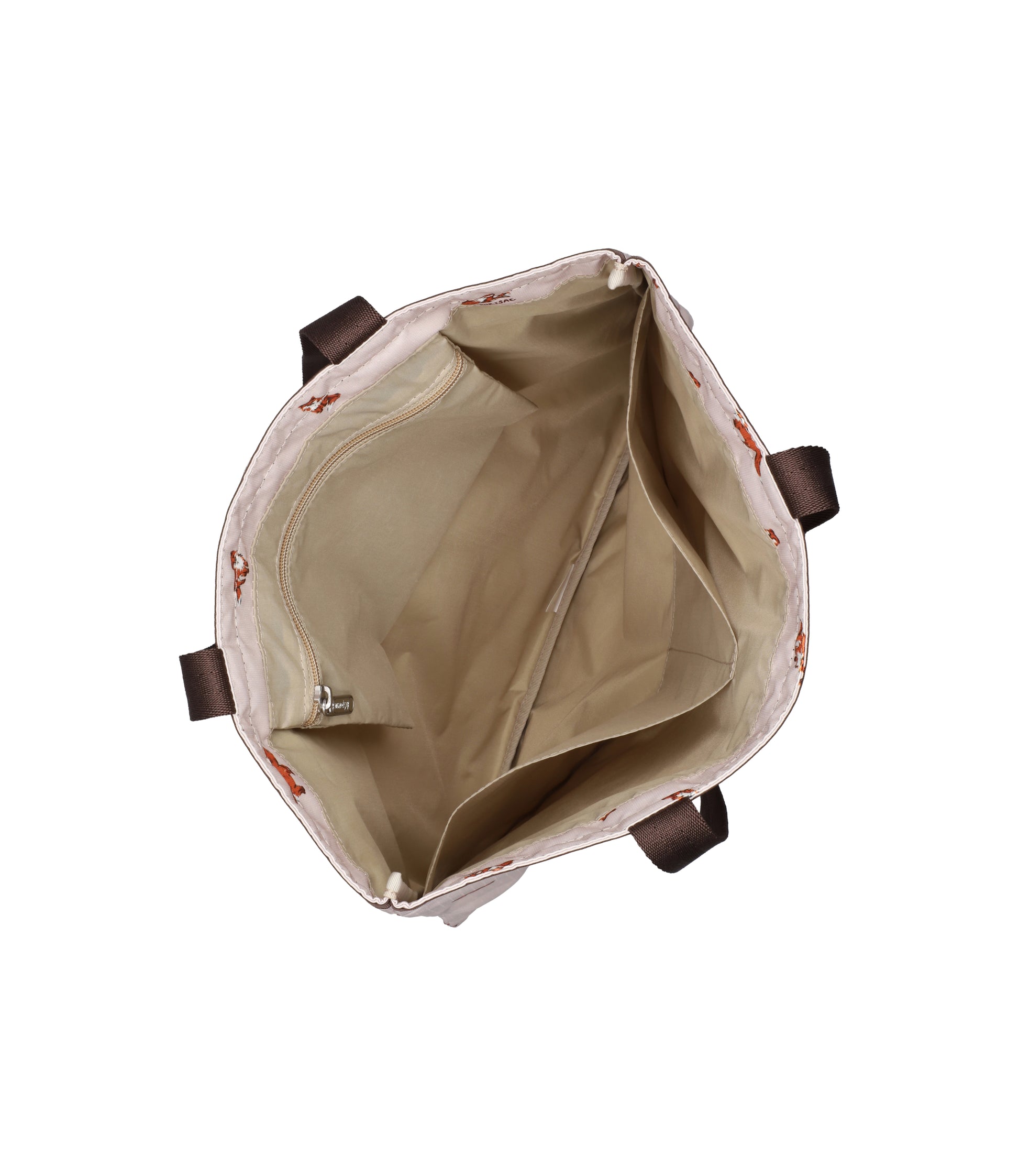 Open top main compartment, Exterior back zip pocket, Two interior front wall open pockets, Interior back wall zip pocket, 1in/2.5cm wide top handles (Drop: 10in/25.5cm)