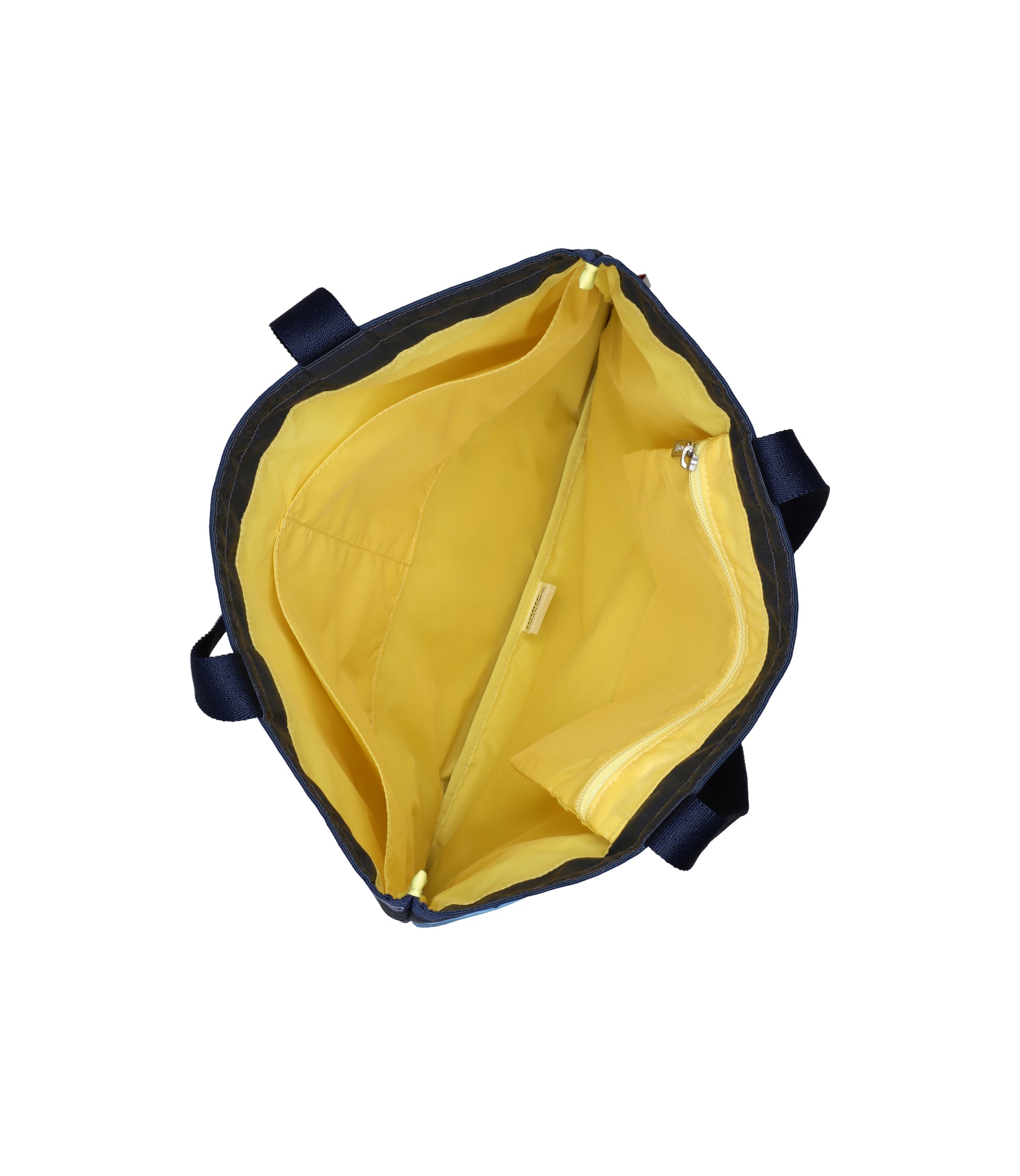 Open top main compartment, Exterior back zip pocket, Two interior front wall open pockets, Interior back wall zip pocket, 1in/2.5cm wide top handles (Drop: 10in/25.5cm).