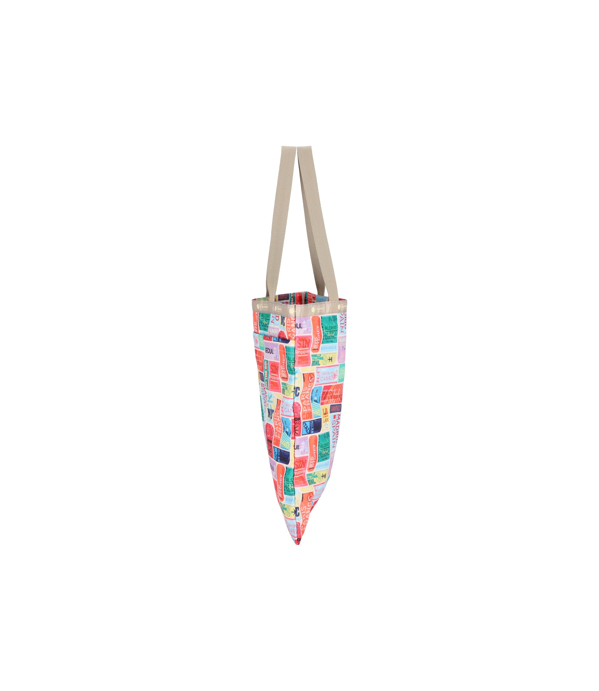 Open top main compartment, Exterior back zip pocket, Two interior front wall open pockets, Interior back wall zip pocket, 1in/2.5cm wide top handles (Drop: 10in/25.5cm).