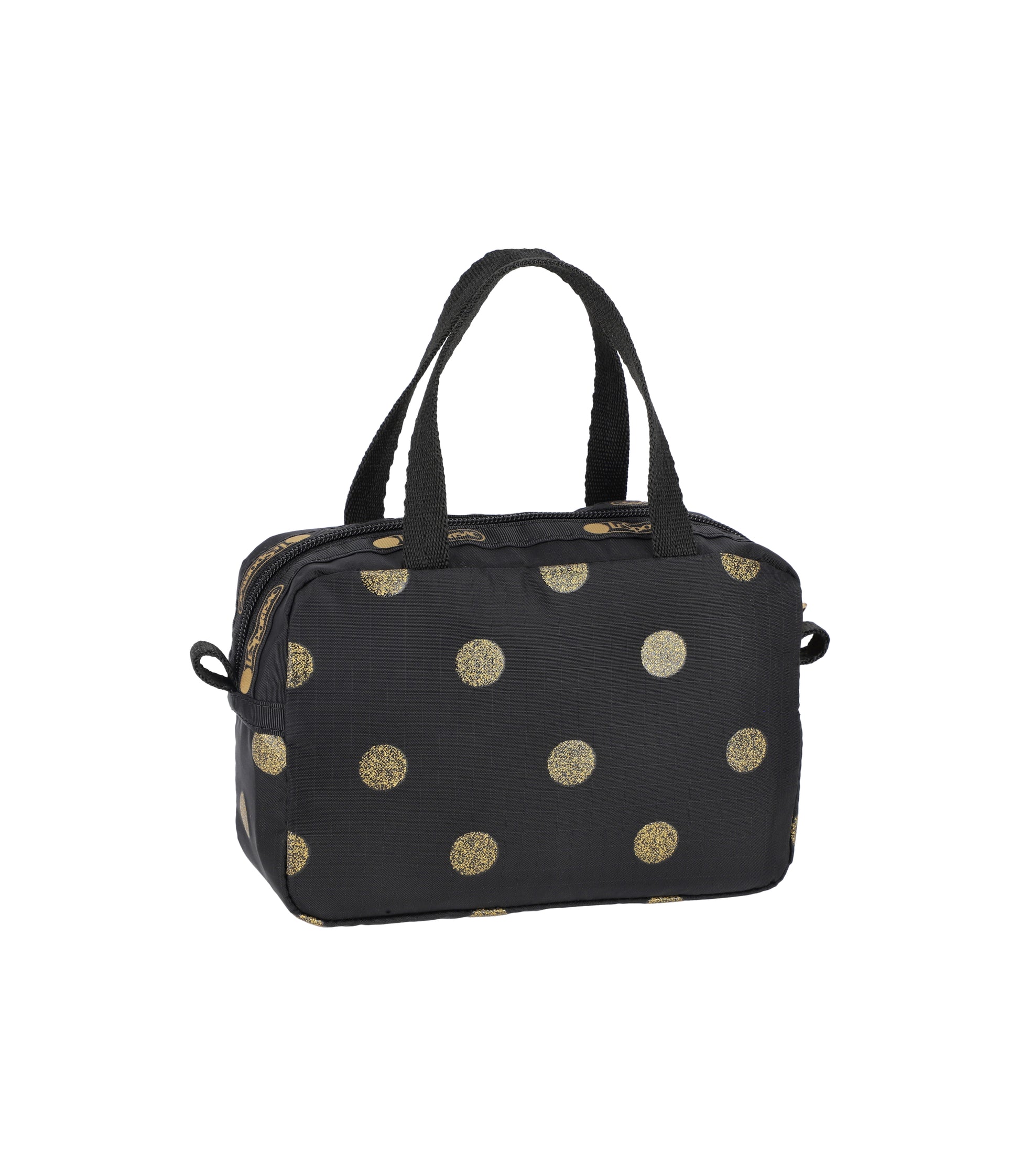 Zip top closure, 3.25in (8.89cm) handle drop, Two Interior back wall open pockets, Exterior webbing side loops.