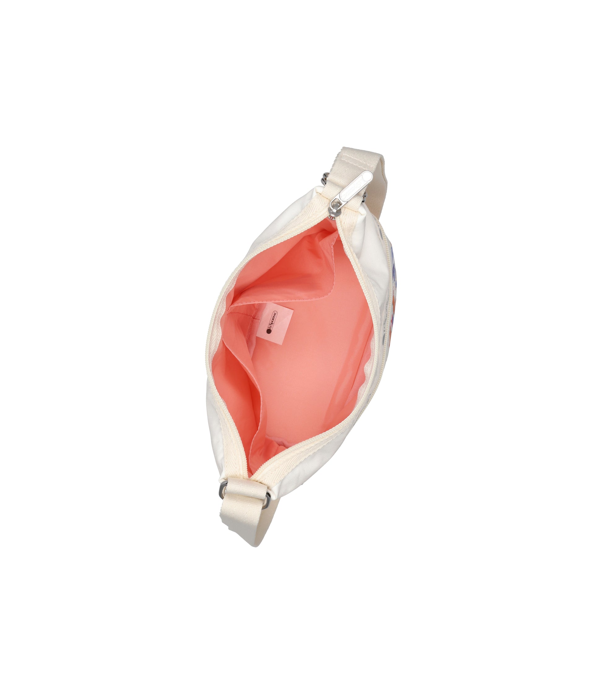 Zip main closure, Exterior front zip pocket, Two interior back wall open pockets, 1in/2.5cm wide adjustable strap (Max Length: 50in/127cm, Min Length: 25.5in/60cm)