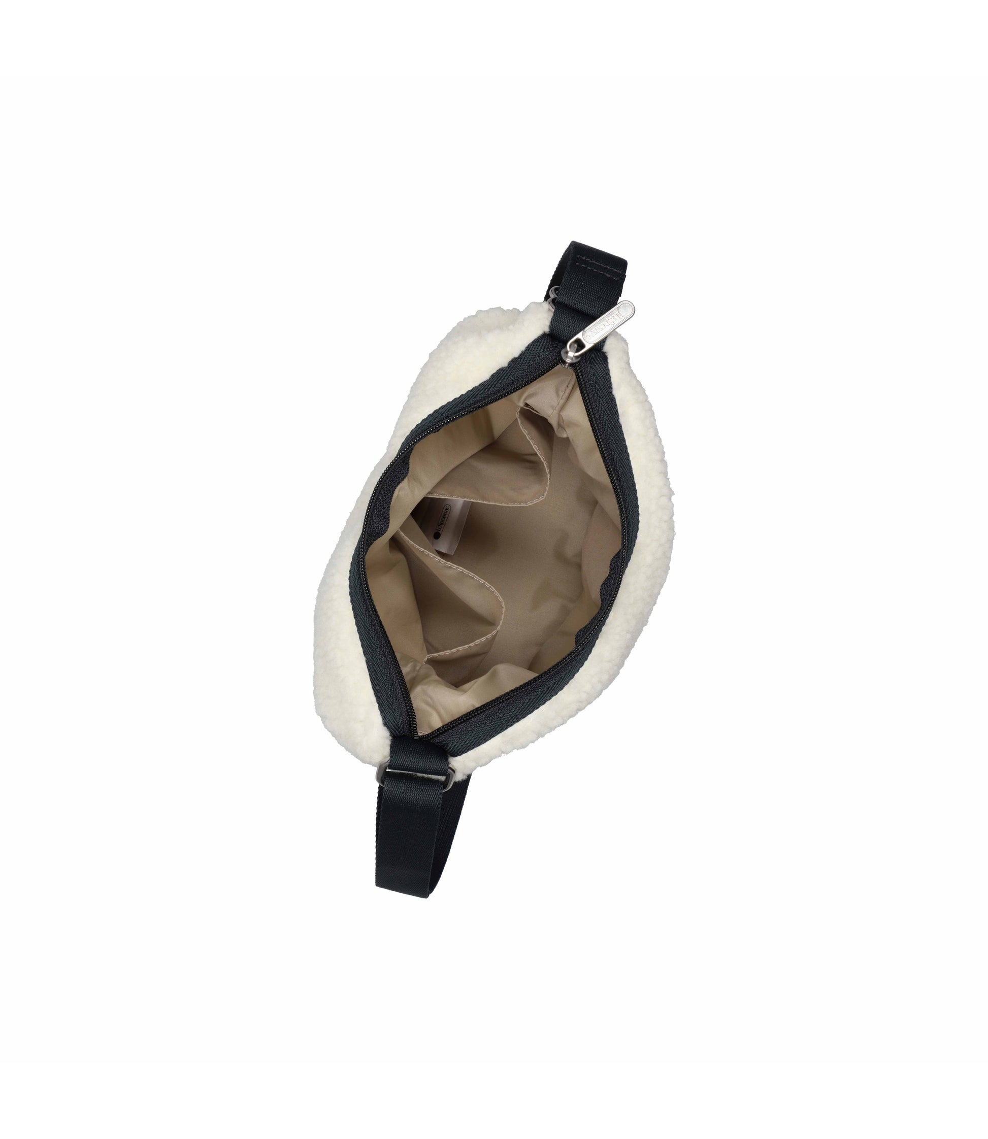Features faux shearling (vegan) fabric paired with our ripstop fabric. Please spot clean only, as continuous washing or rough treatment may cause damage.