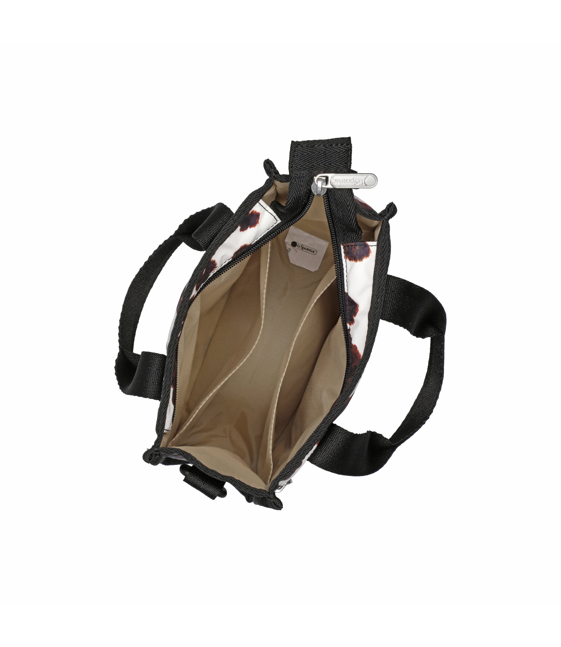 Zipped main closure, Exterior front pocket with zipped closure, Interior front wall and Interior back wall open pocket, 1in/2.8cm wide top handles (Handle Drop: 3.15in/8 cm, Strap Length:10.6in/ 27 cm), 1.5 in/3.8cm wide Adjustable/detachable shoulder strap (Max length: 50 in/127 cm, Min length: 26.4 in/67 cm)