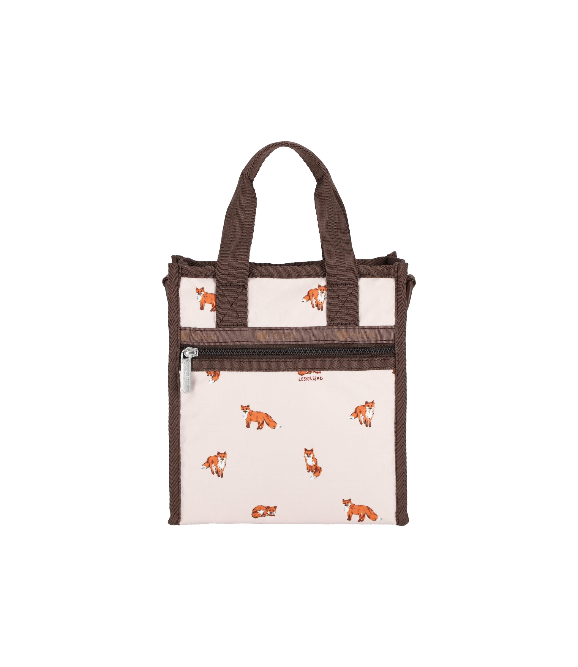 Zip top main closure, Exterior front pocket with zip closure, Interior front wall open pocket, Interior back wall open pocket, 1in/2.8cm wide top handles (Handle Drop: 3.15in/8 cm, Strap Length:10.6in/ 27 cm), 1.5 in/3.8cm wide Adjustable/detachable shoulder strap (Max length: 50 in/127 cm, Min length: 26.4 in/67 cm)