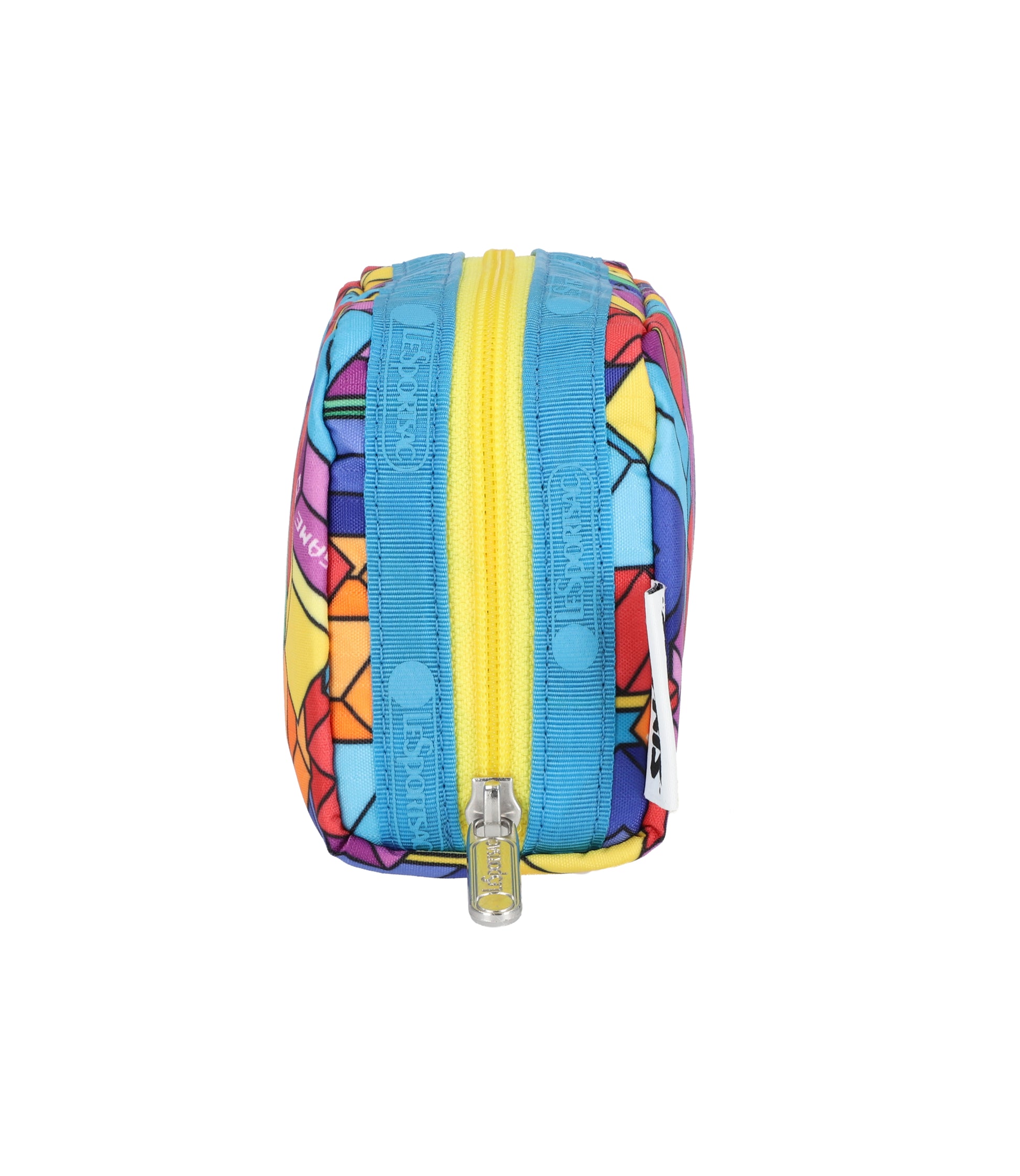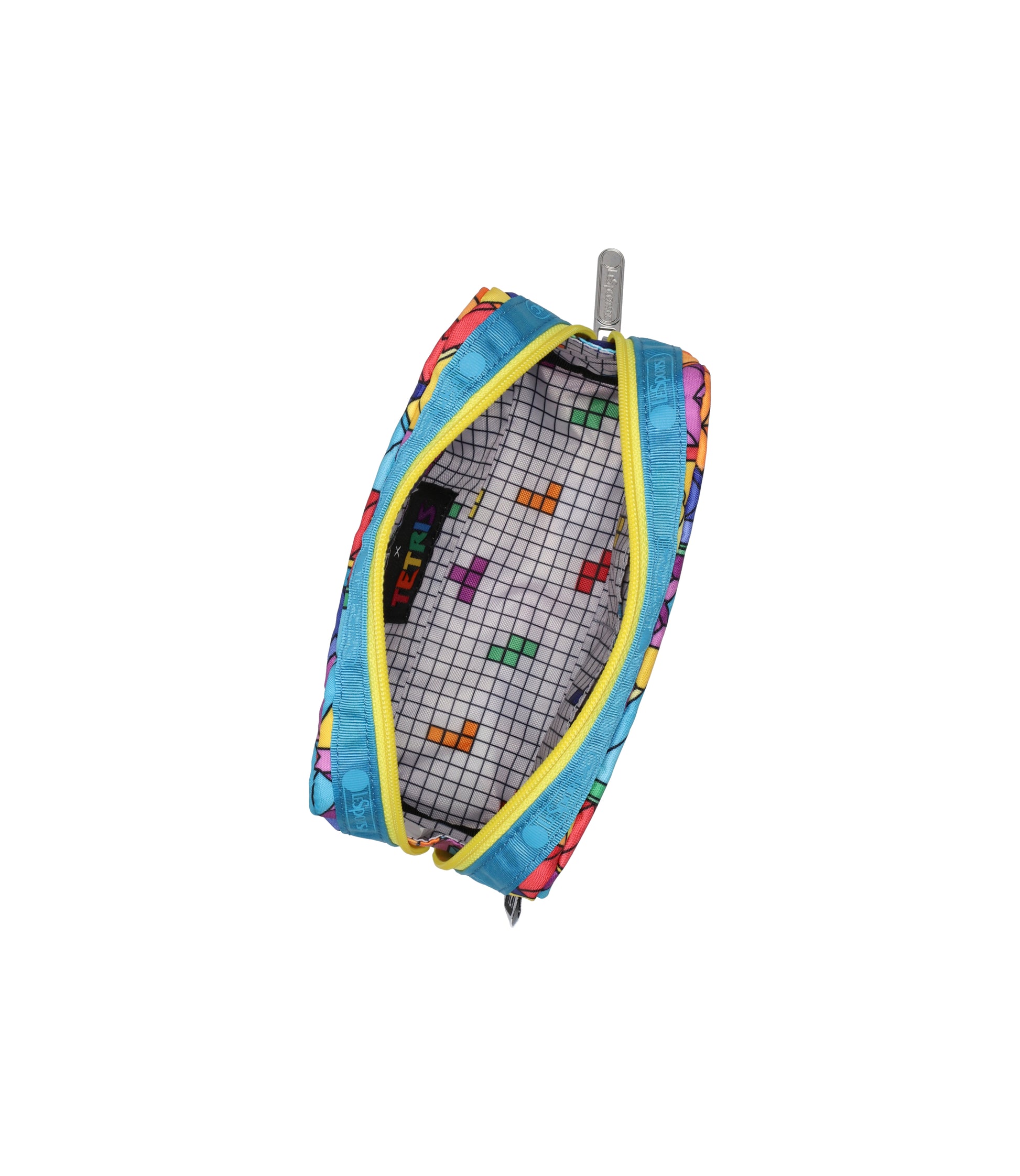 Zipped main closure, Interior back wall open pocket, Two interior front wall open pockets