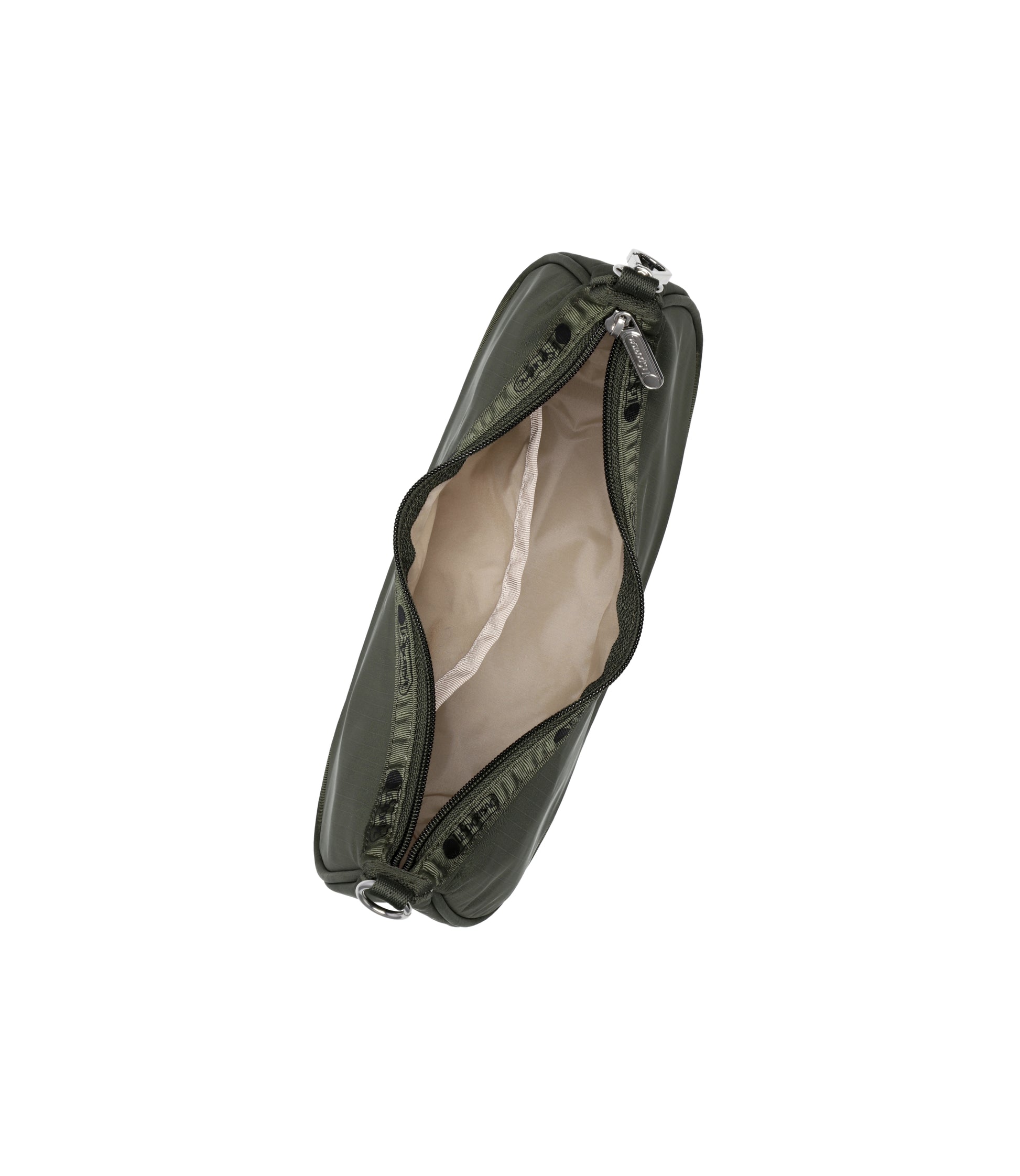 Zipped main closure, Interior back wall open pocket, features Metal hardware, Vegan-leather trim