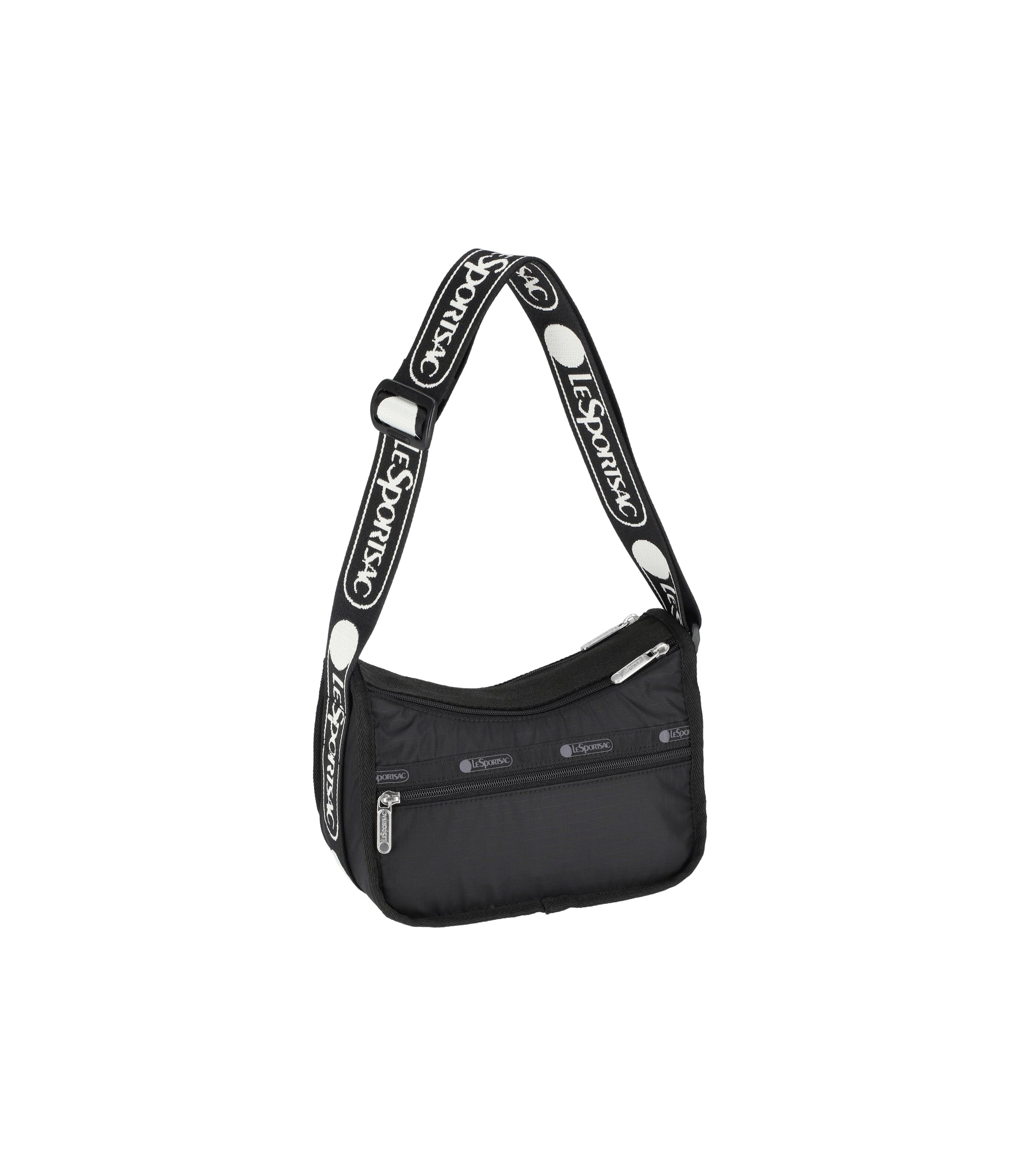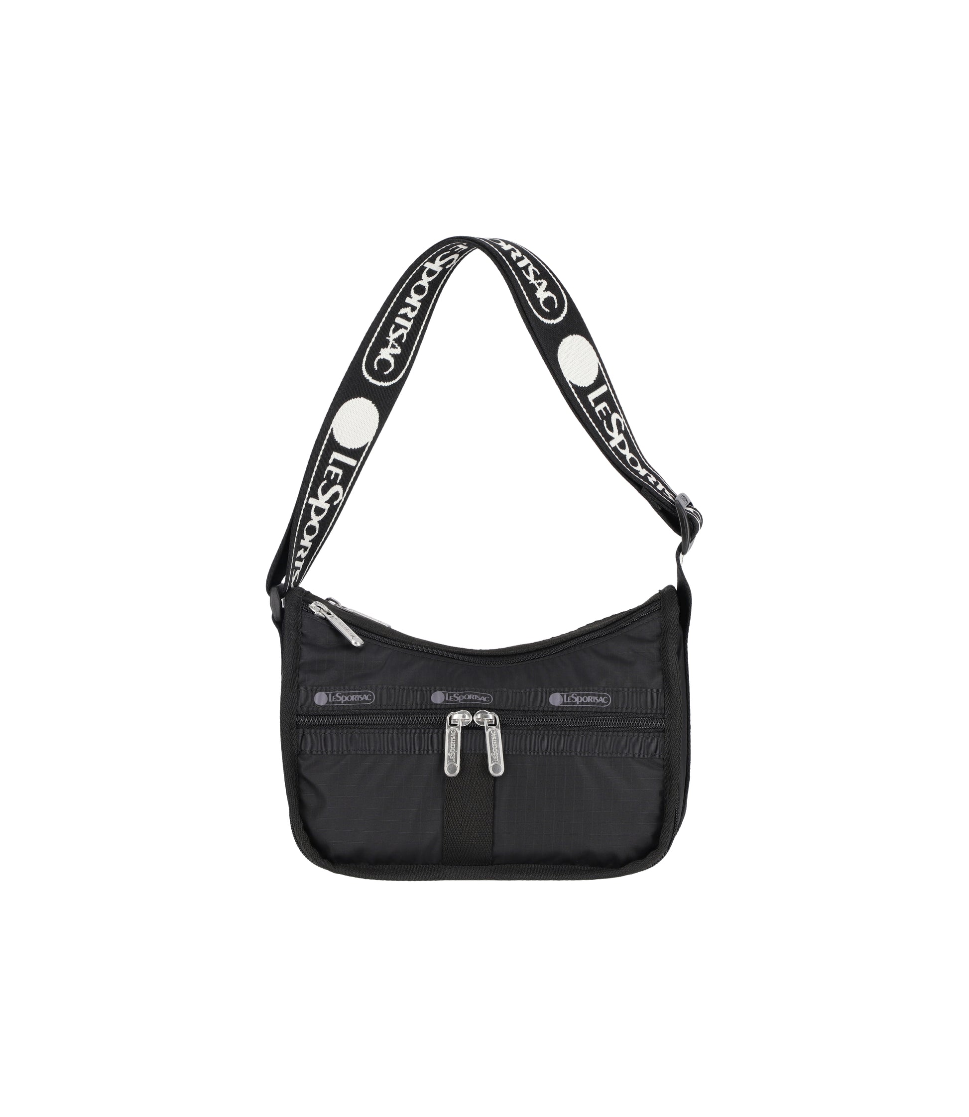 Two main compartments with zipped closures, Zip expandable front main compartment, Exterior front zip pocket with dual zipper pulls, Exterior back zip pocket, Two interior back wall open pockets in rear compartment, 1.5in/3.8cm adjustable shoulder strap (Max Length: 36in/91.4cm, Min Length: 19.75in/50.2cm)